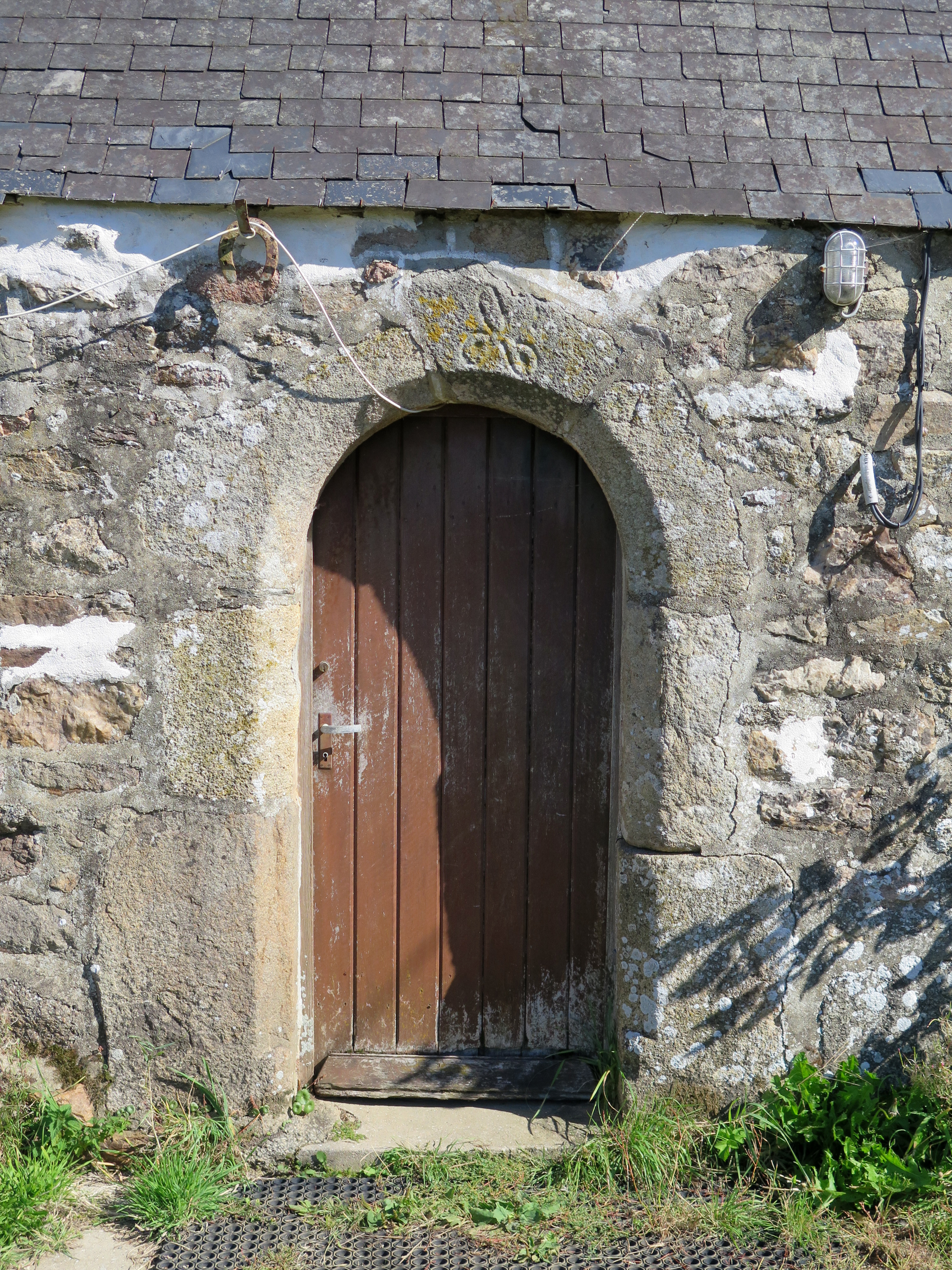 Plouzélambre, Traou ar Woas : logis de ferme, élévation sud, détail de la porte en arc plein cintreImmatriculation