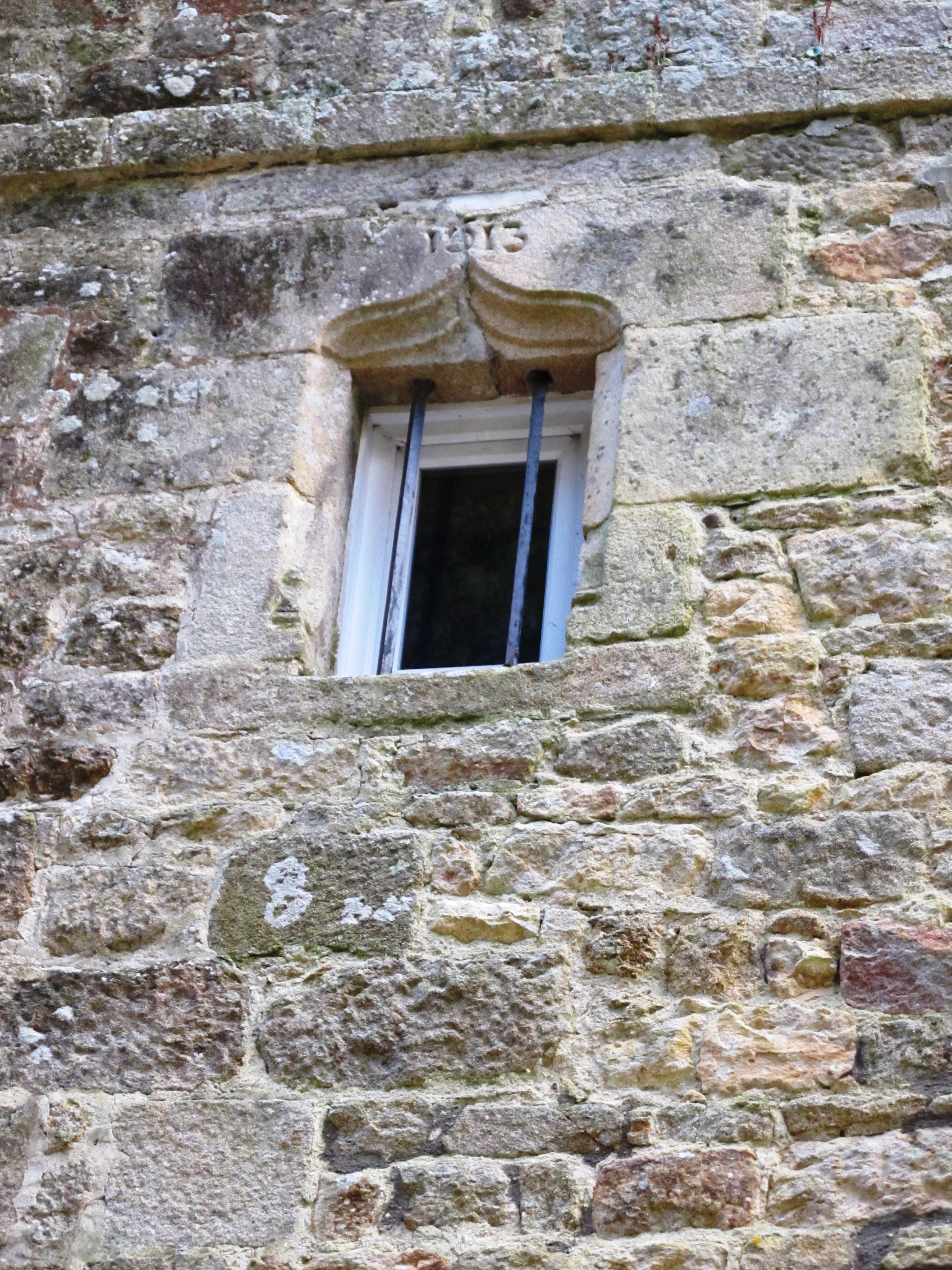 Logis de la fin du 19e siècle, pignon nord avec remploi d'une fenêtre à l'étage datée 1613Immatriculation