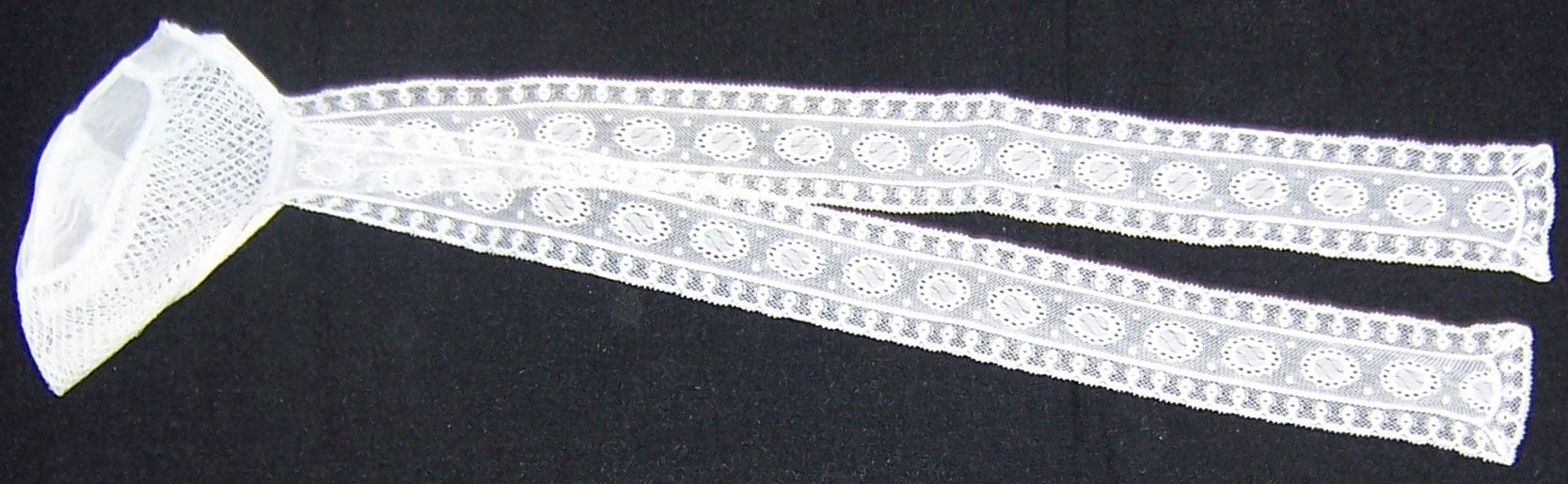 Pièce confirmant la variété des tissus utilisés : il s’agit d’un entre-deux avec motifs et bordé d’une dentelle. Collection de Frédéric Raffray. (Photo H.Saillour)Immatriculation