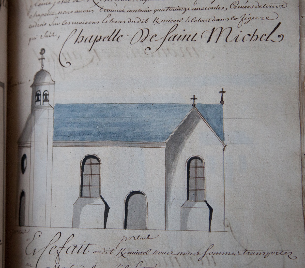 Chapelle Saint-Michel, Dessin à la plume aquarellé, 1731 (A. D. de La Vienne, 3H1 450)Immatriculation