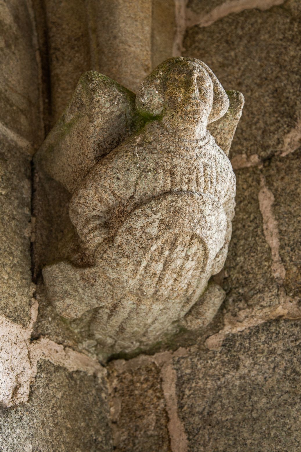 Culot sculpté d'un ange banderolé, porche méridional, Eglise Saint-Jean de Keraudy (Ploumilliau)Immatriculation