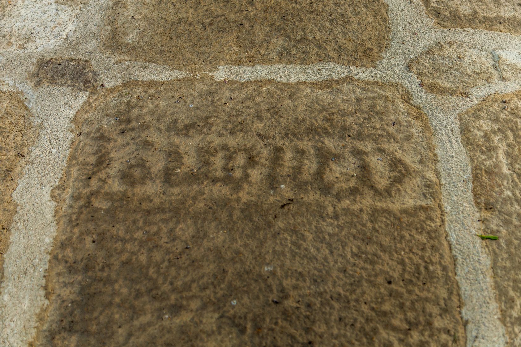 Gravure sur une dalle funéraire de la nef, Chapelle Saint-Jean-Baptiste de Trévoazan (Prat)Immatriculation