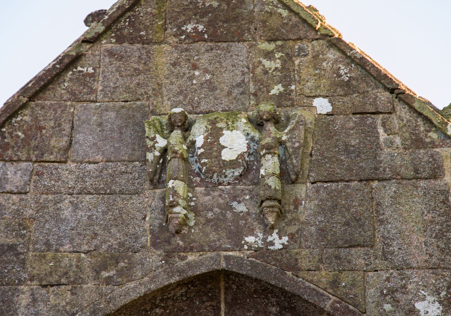 Armoirie fichée dans la maçonnerie, gâble du transept nord, Eglise Saint-Jean-Baptiste du Burthulet (Saint-Servais)Immatriculation