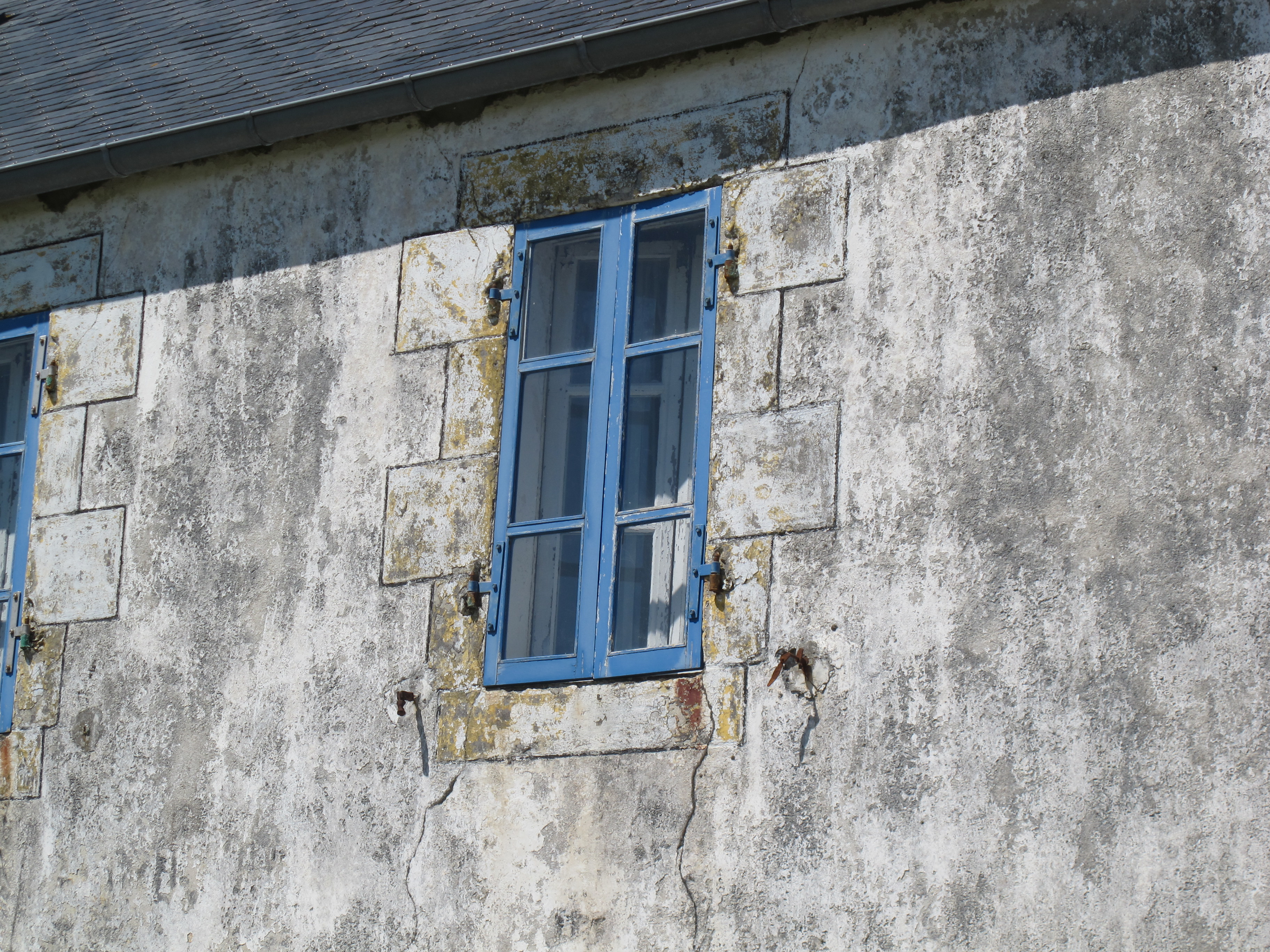 Croas ruz, maison, fenêtre du second niveau, volets vitrés, encadrement ciment (détail)Immatriculation