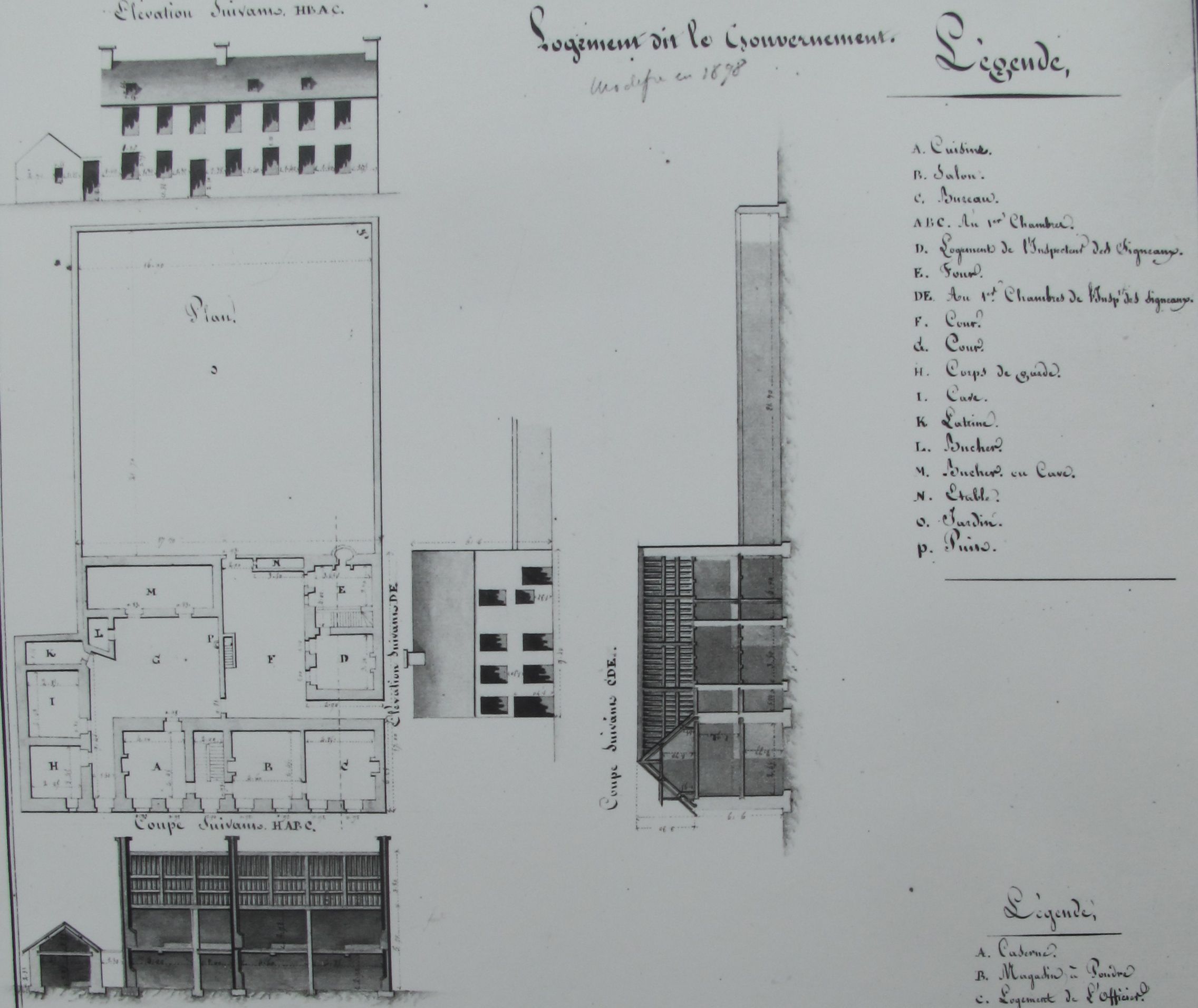 Atlas des bâtiments militaires des places de France : établissements d'Ouessant : logement dit le Gouvernement, vers 1846 (extrait)Immatriculation