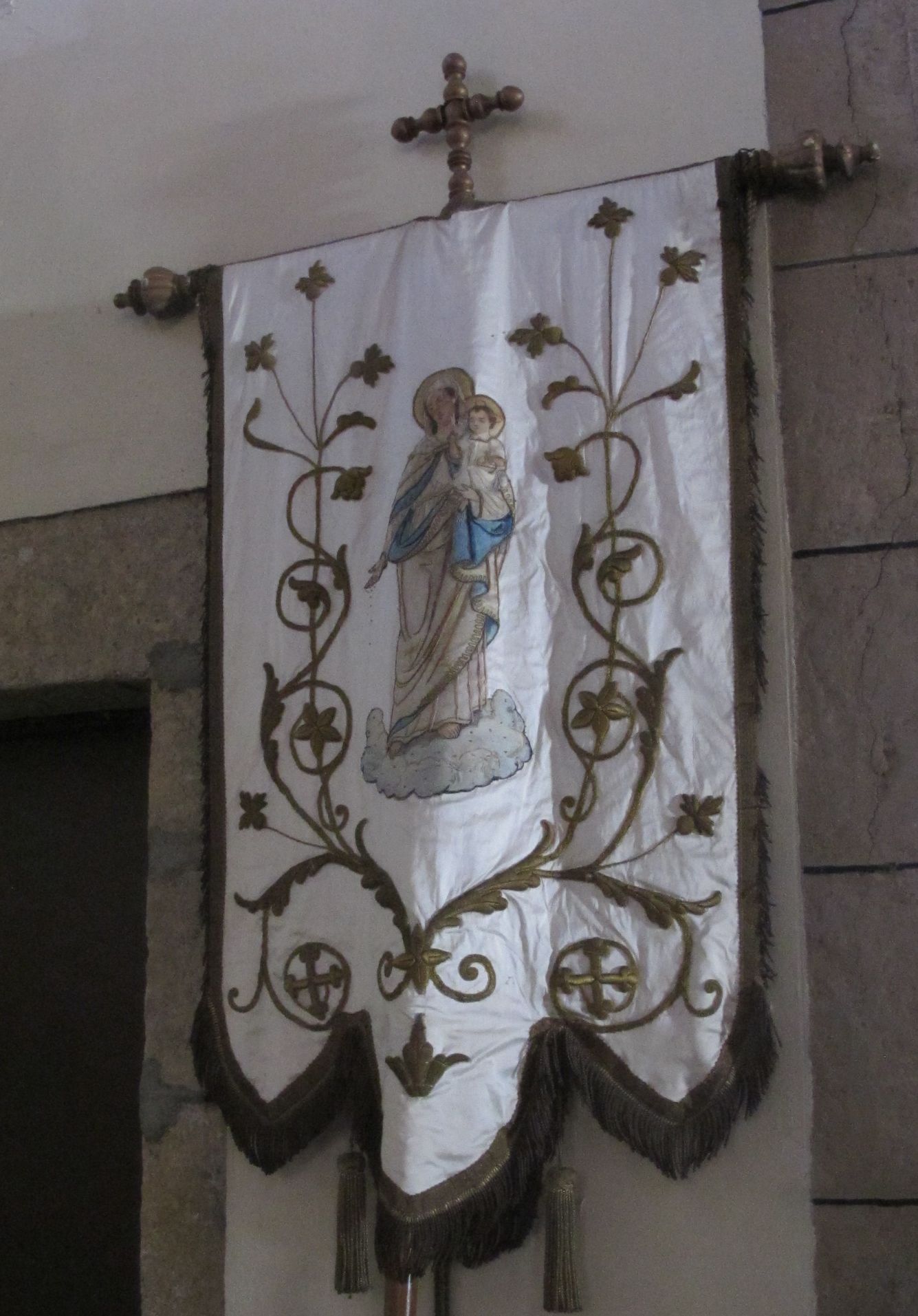 Bannière de procession : Vierge à l'Enfant, soieImmatriculation