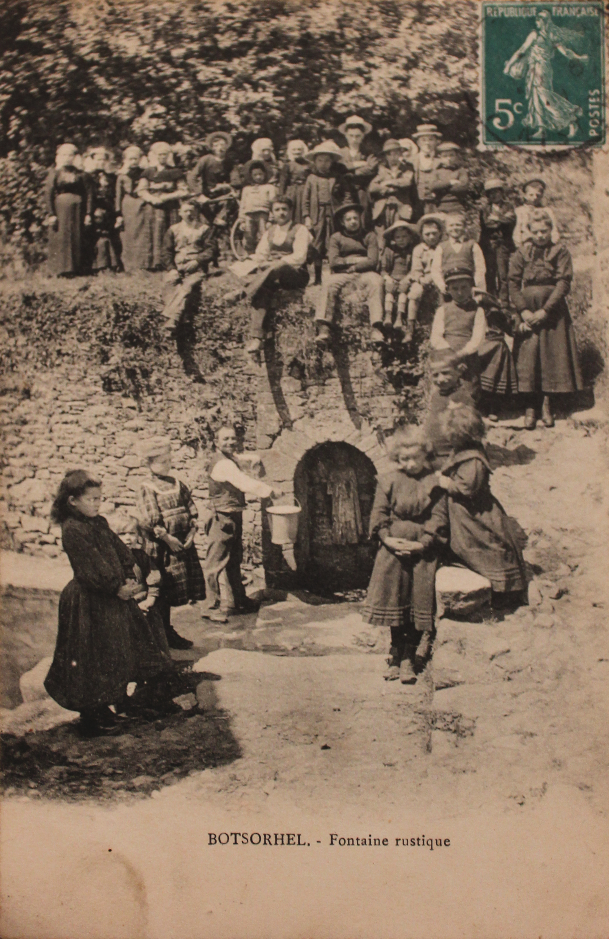 Carte postale ancienne, début 20e siècle : Botsorhel, bourg, fontaine et lavoir de KerizellaImmatriculation