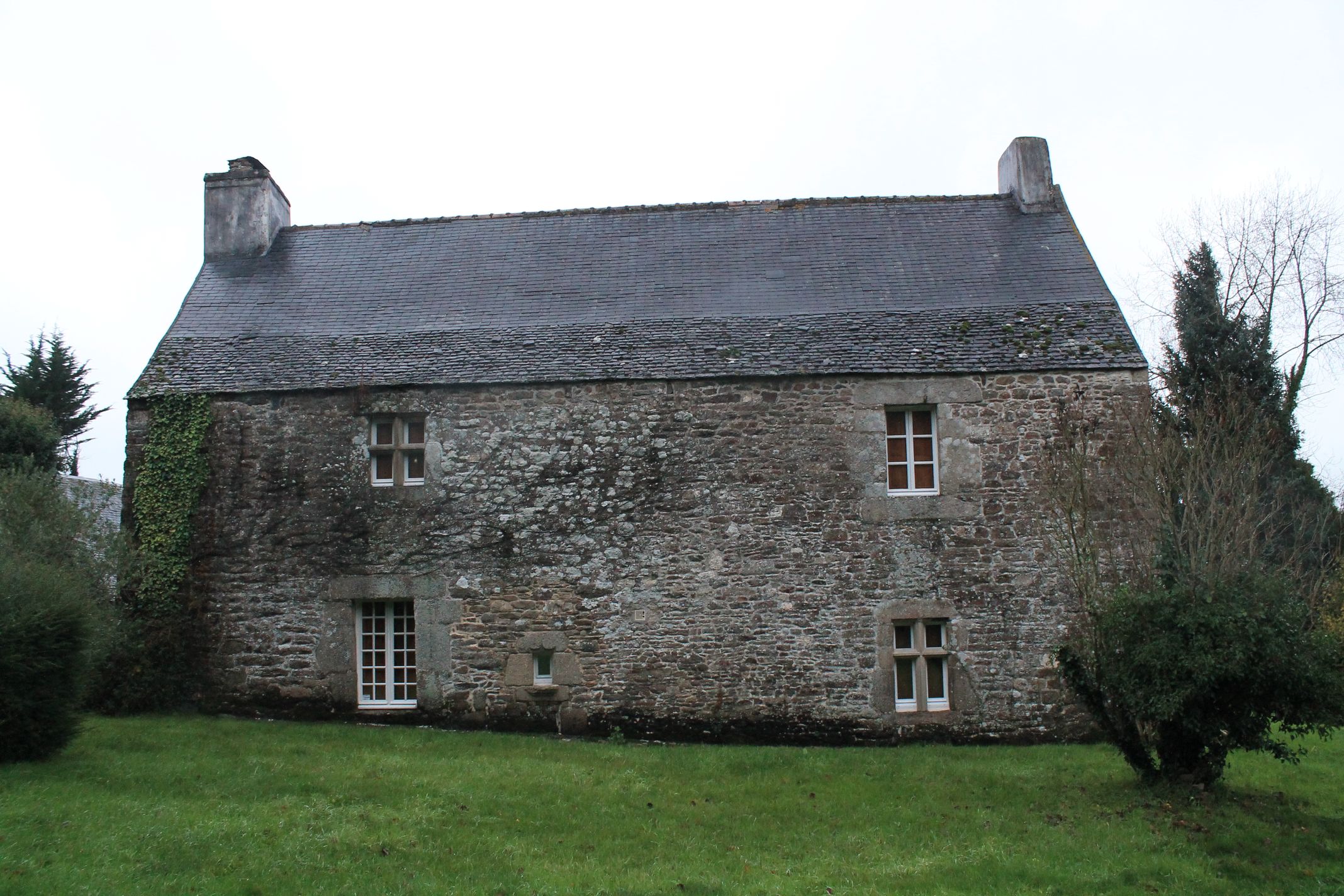 Botsorhel, le Foennec, ferme : façade arrière avec pierres de réemploiImmatriculation