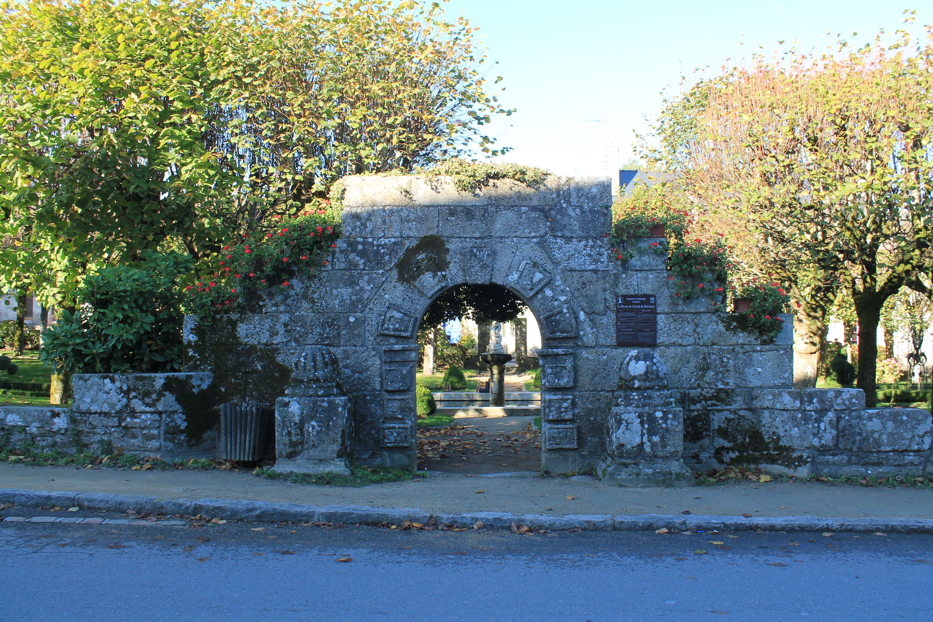 Guerlesquin, ville, place du champs de bataille : ancien porche de la chapelle Saint-Ener remontéImmatriculation