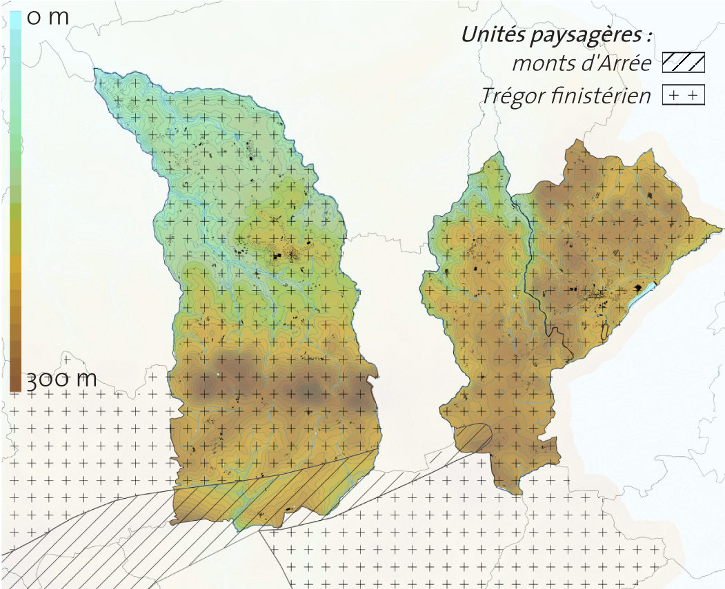 Carte d'altitude et des unités paysagères du Parc d'Armorique - Plougonven, Botsorhel et GuerlesquinImmatriculation