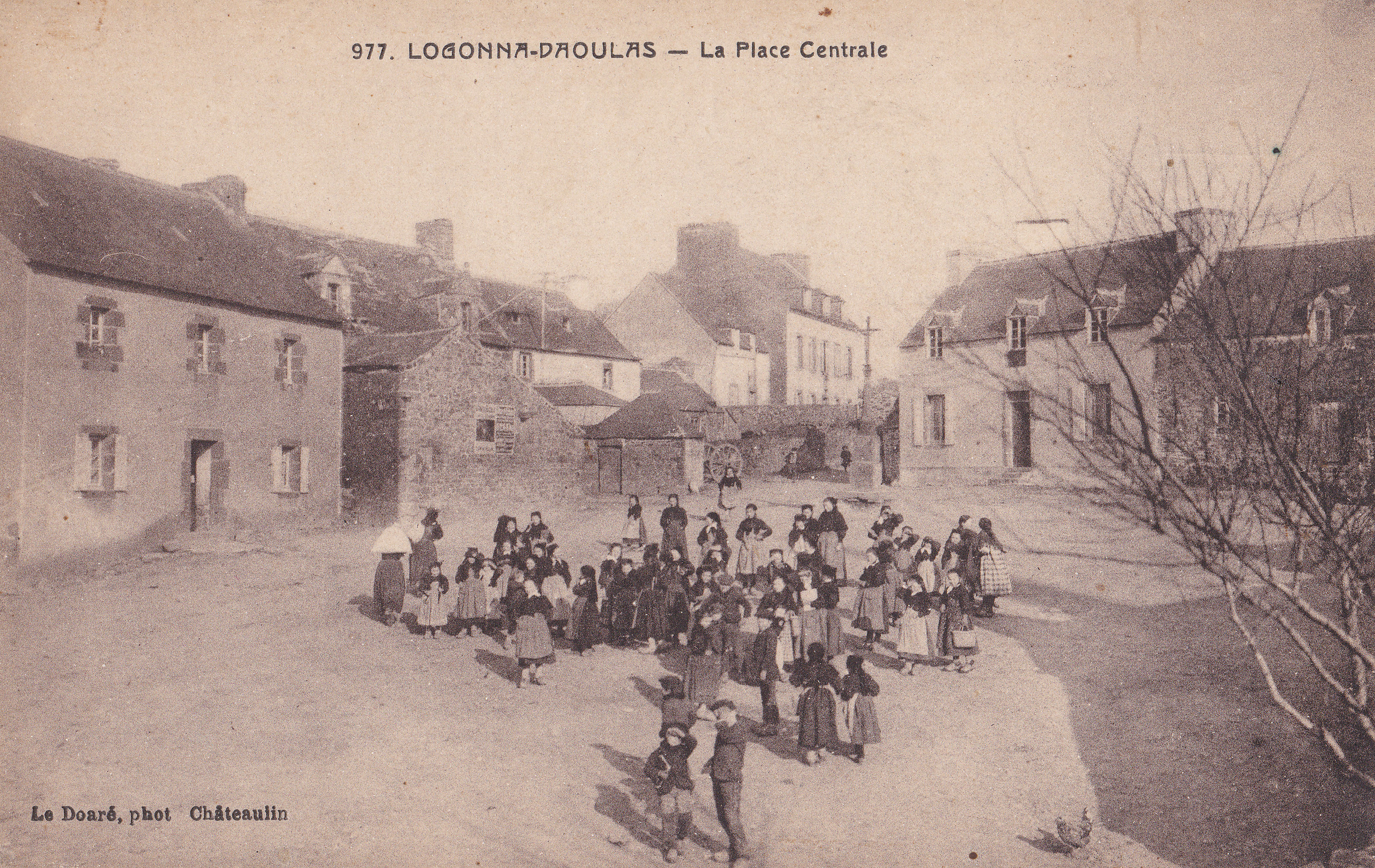 Logonna-Daoulas, bourg - La place centrale, danse bretonne (carte postale ancienne, éditions Jos)Immatriculation