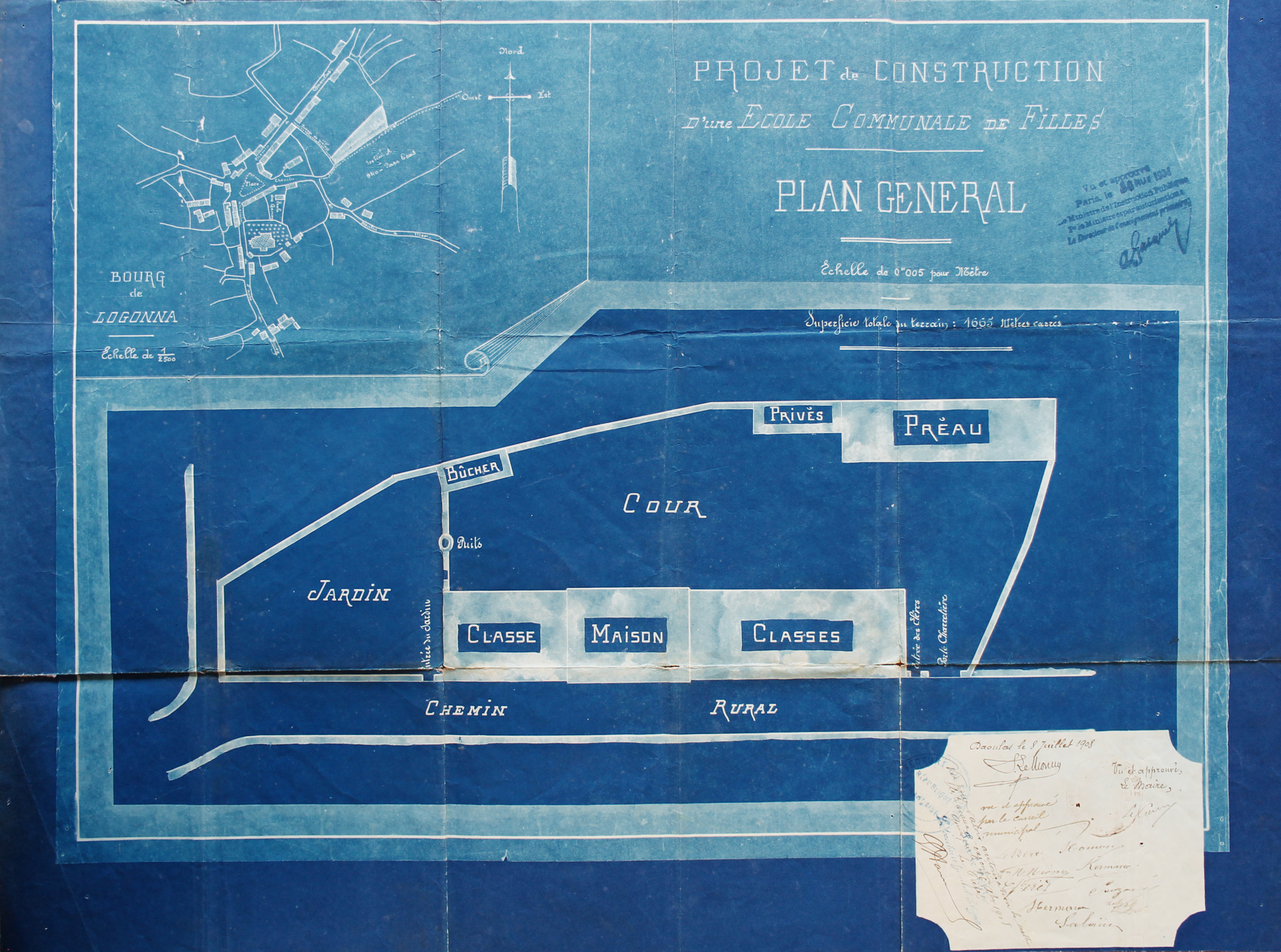 Logonna-Daoulas - Projet de construction d'une école des filles, plan général, 1908 (Source : AD29, 553 E Dépot 18 - Logonna-Daoulas, Série M Bâtiments communaux)Immatriculation