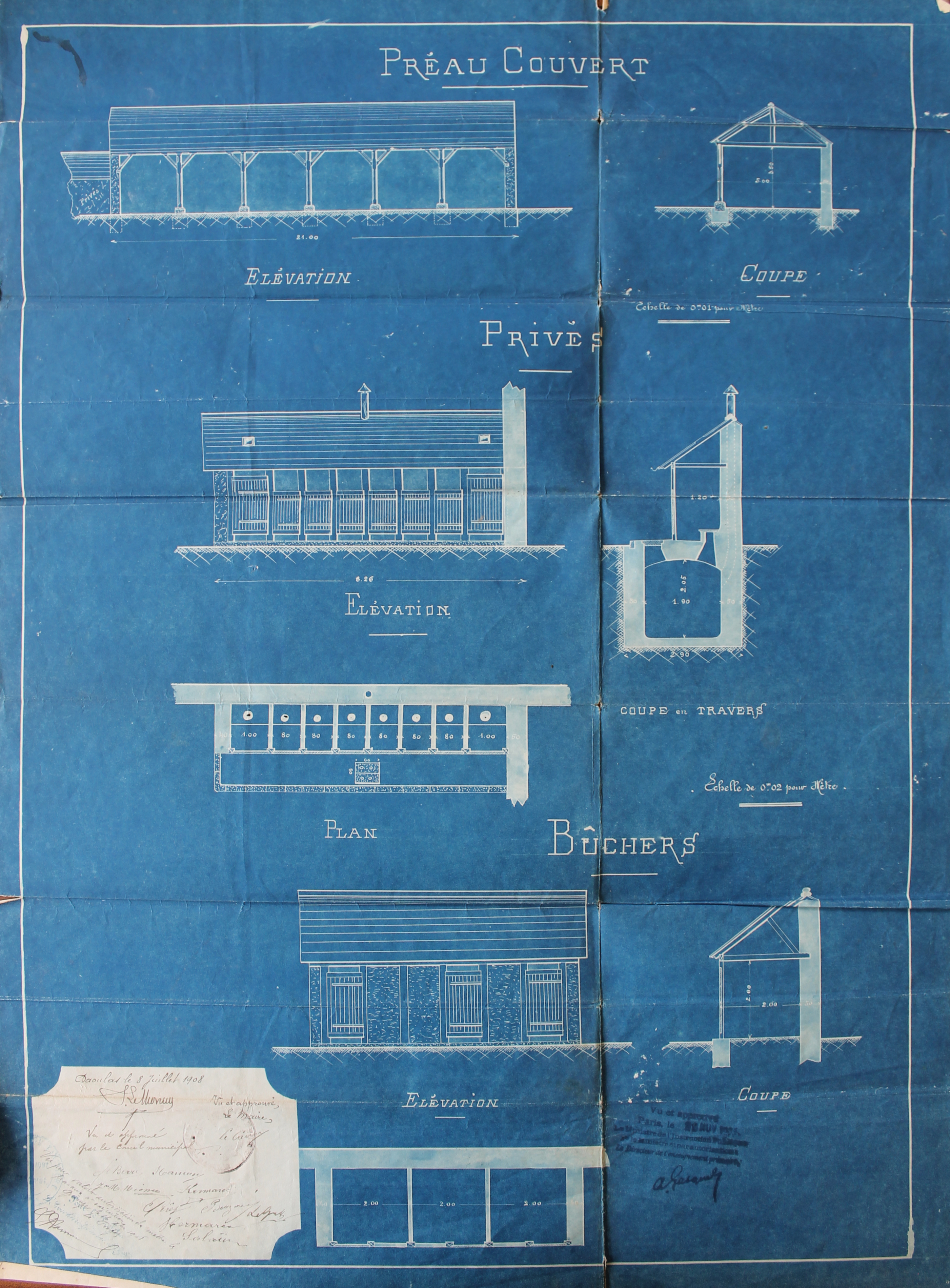 Logonna-Daoulas - Projet de construction d'une école des filles, préau, privés et buchers, 1908 (Source : AD29, 553 E Dépot 18 - Logonna-Daoulas, Série M Bâtiments communaux)Immatriculation