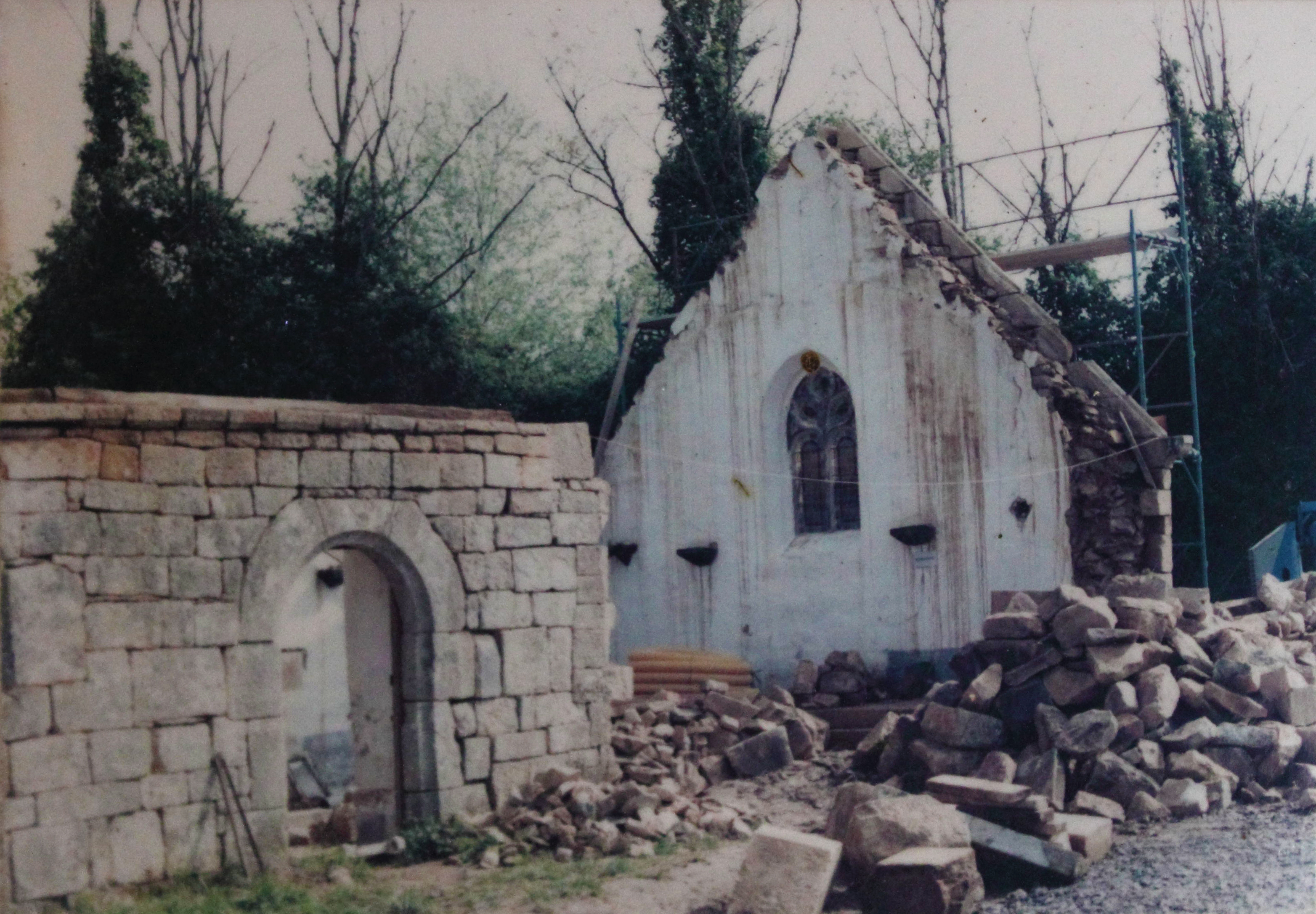 Logonna-Daoulas, chapelle Saint-Jean - reconstruction des maçonneries de la façade sud, état pendant travaux de restaurationImmatriculation