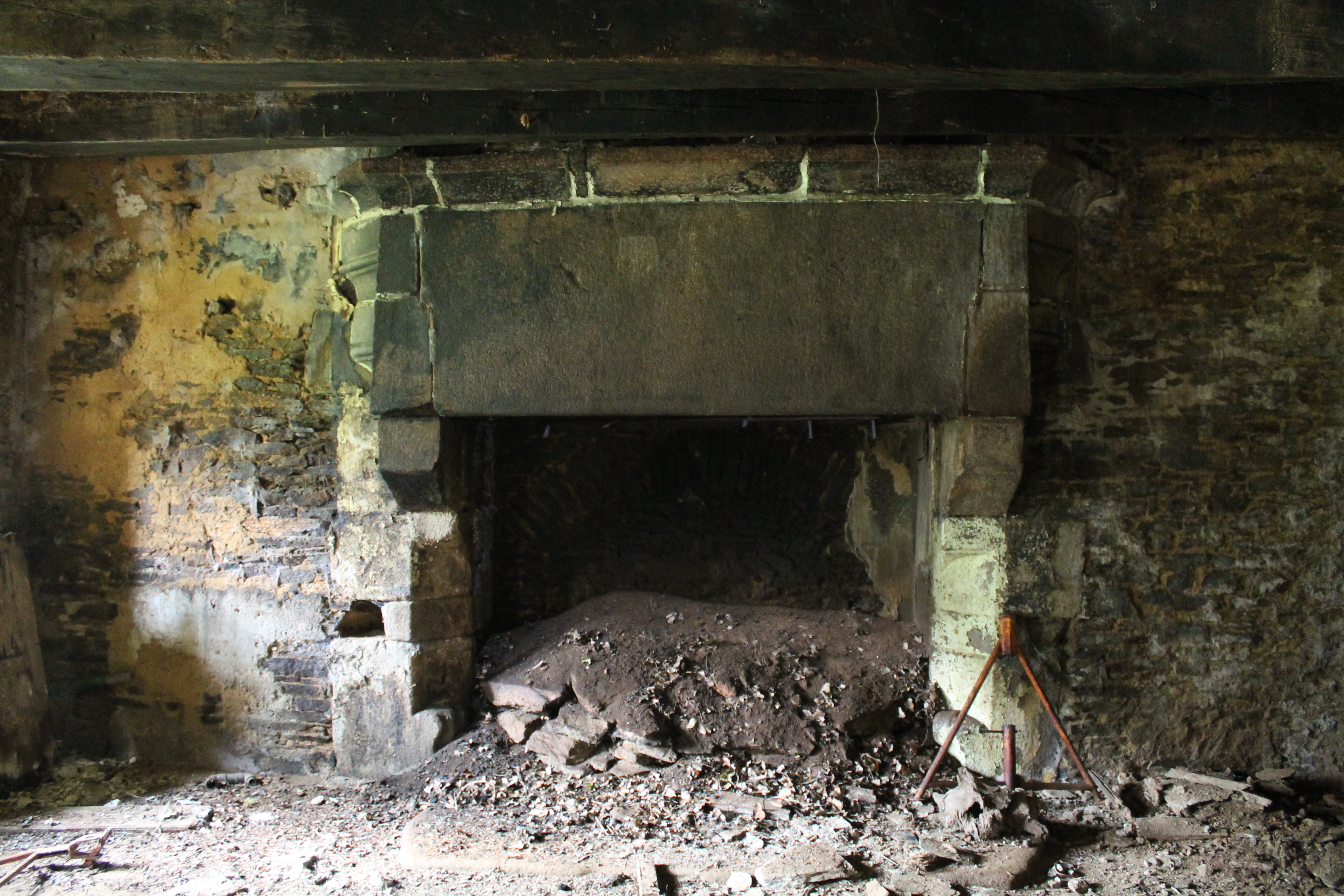 Plougonven, ancien manoir de Goasvalé - cheminée de l'ancienne salle basse, rez-de-chausséeImmatriculation