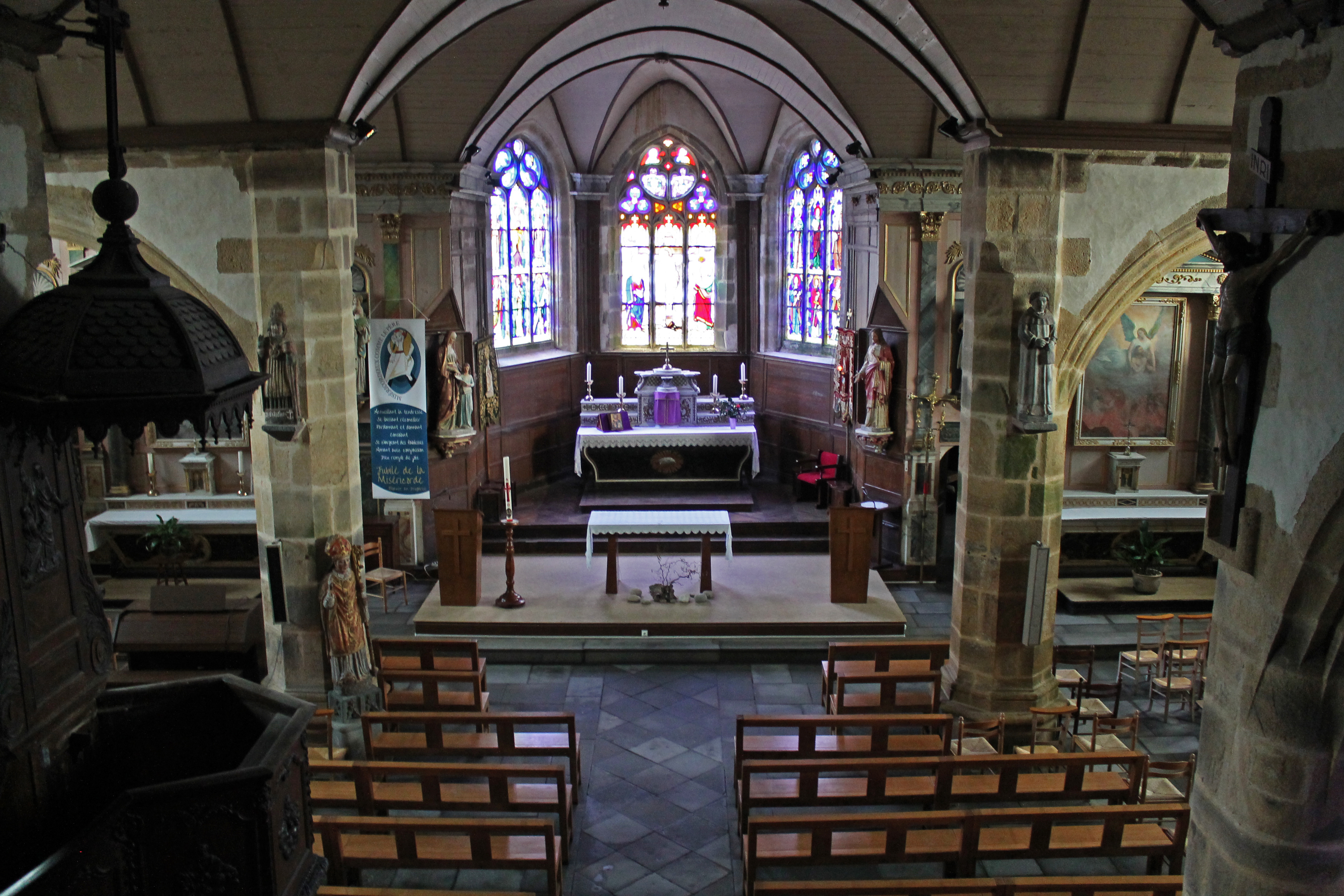Logonna-Daoulas, église Saint-Nonna - Vue intérieure vers le choeurImmatriculation