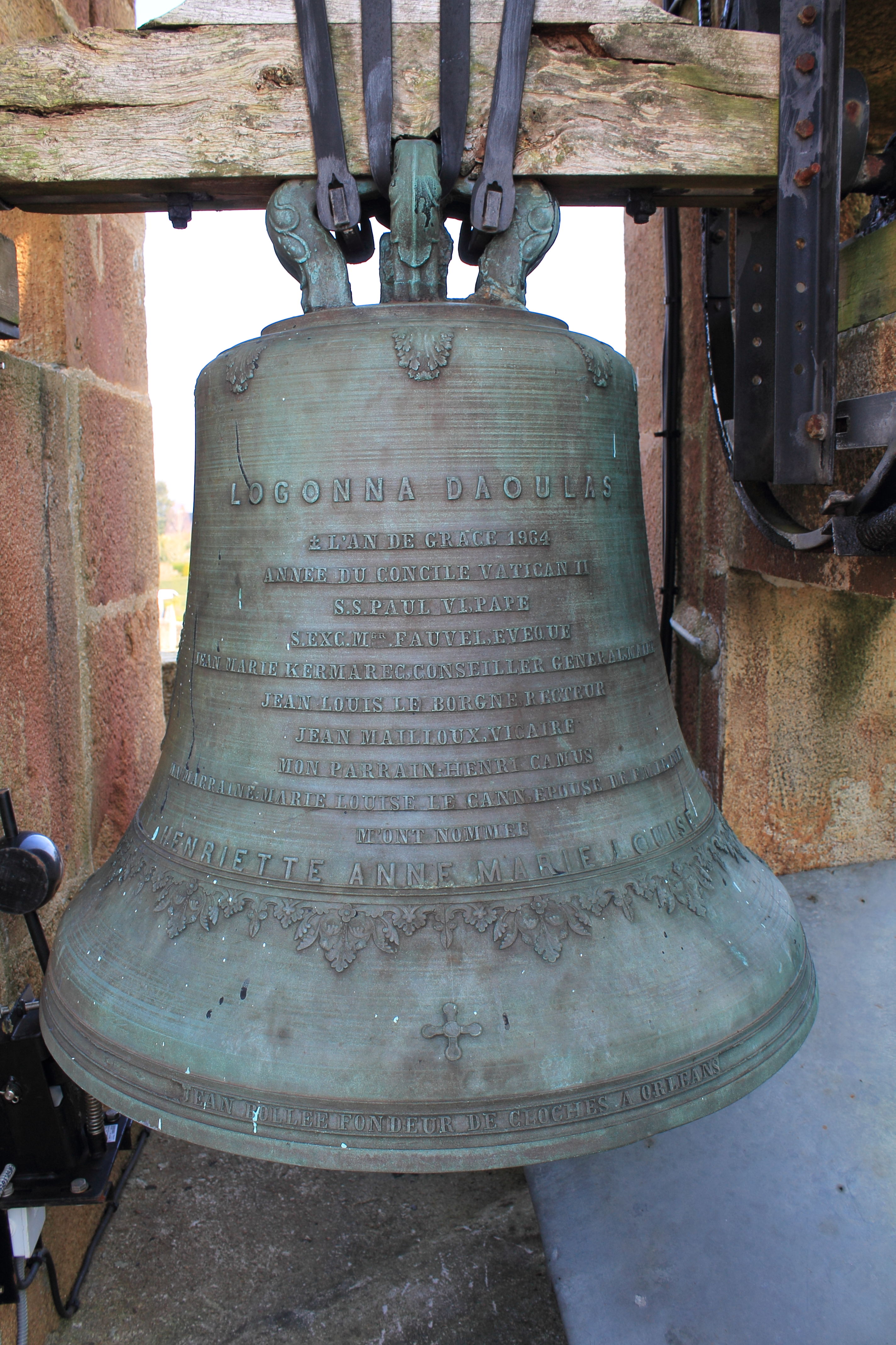 Logonna-Daoulas, église Saint-Nonna - tour-clocher, détail d'une cloche datée 1964Immatriculation