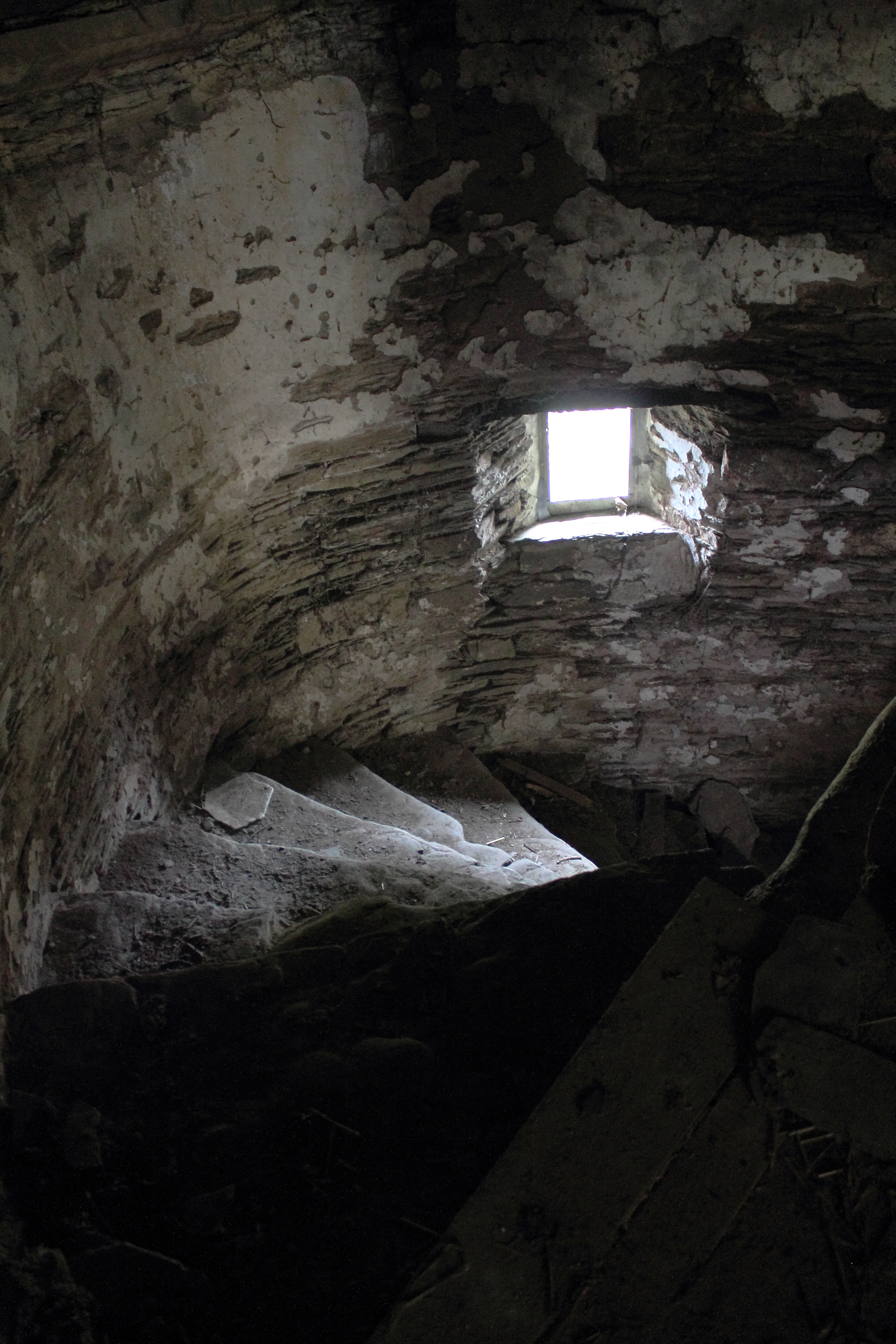 Saint-Coulitz, Kerviliou - Vue intérieure, détail de l'escalier à visImmatriculation