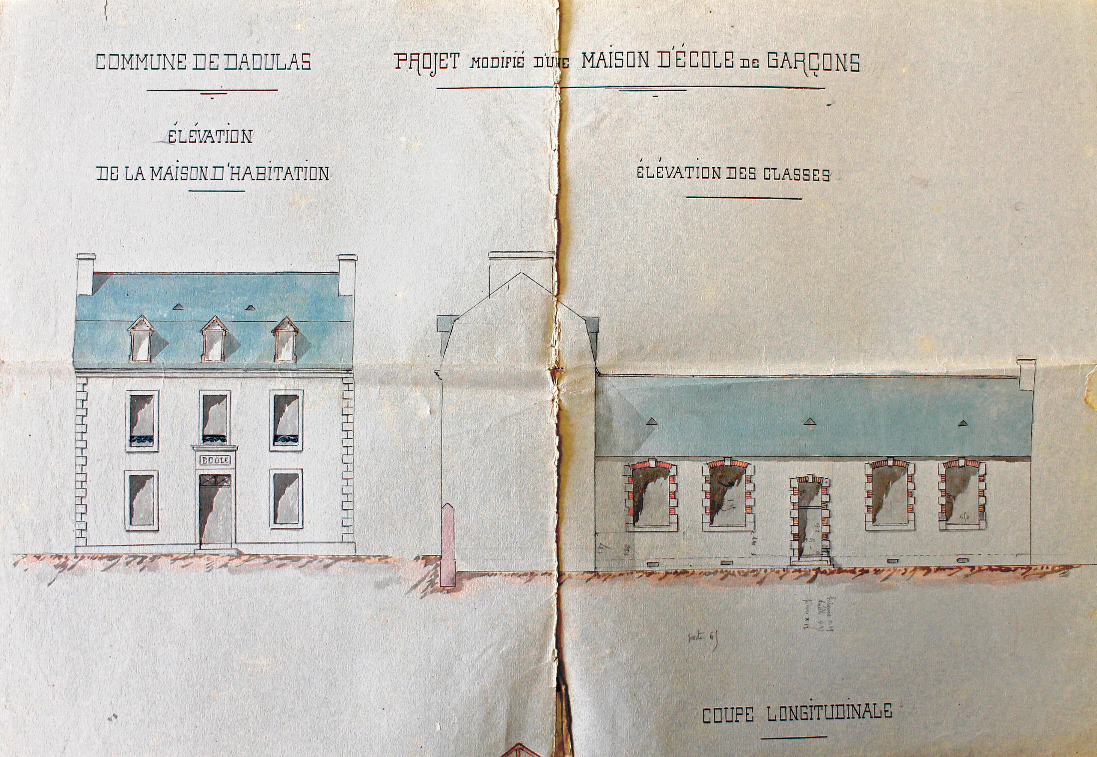 Daoulas, ville - Projet modifié d'une maison d'école de garçons, 11 avril 1885 (AD29 - 512 E DEPOT art.21)Immatriculation