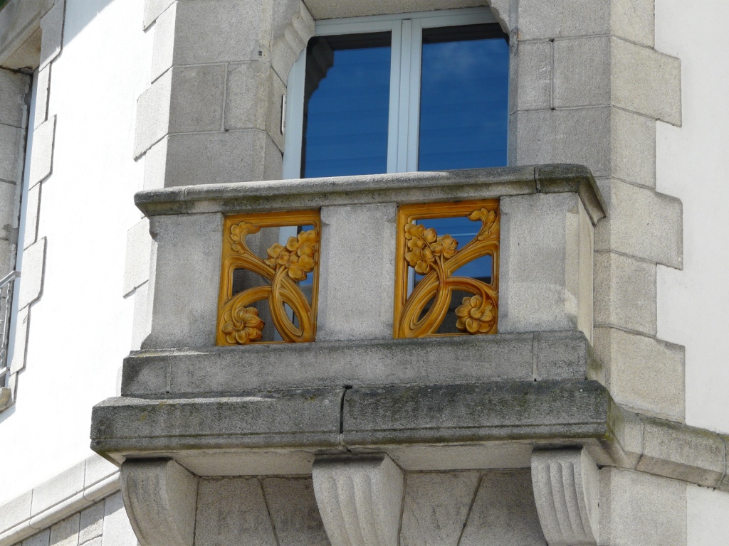 Balcon en granit et grés flammé de l'ouverture du premier étage du pan coupéImmatriculation