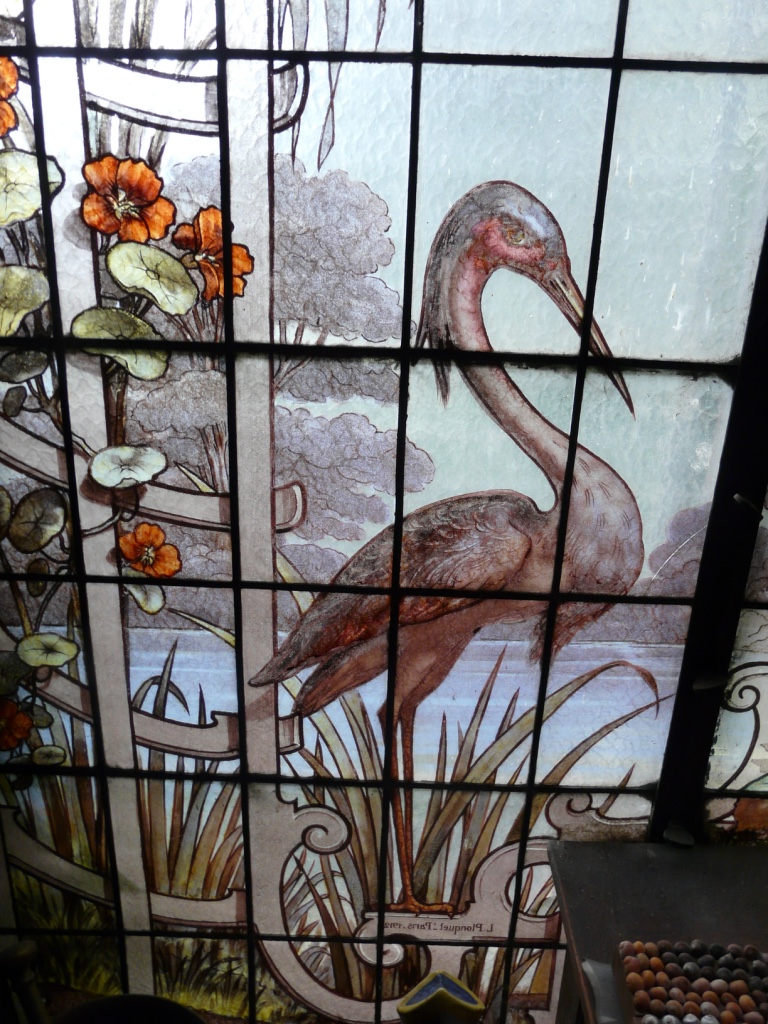 Détail de l'oiseau sur le vitrail dans la cage d'escalierImmatriculation