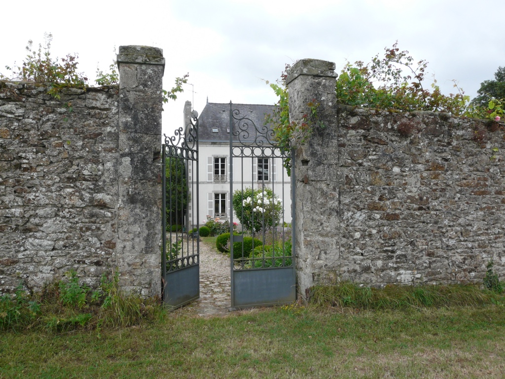 Vue depuis un champ du portail nord et de la façade postérieure de la demeureImmatriculation