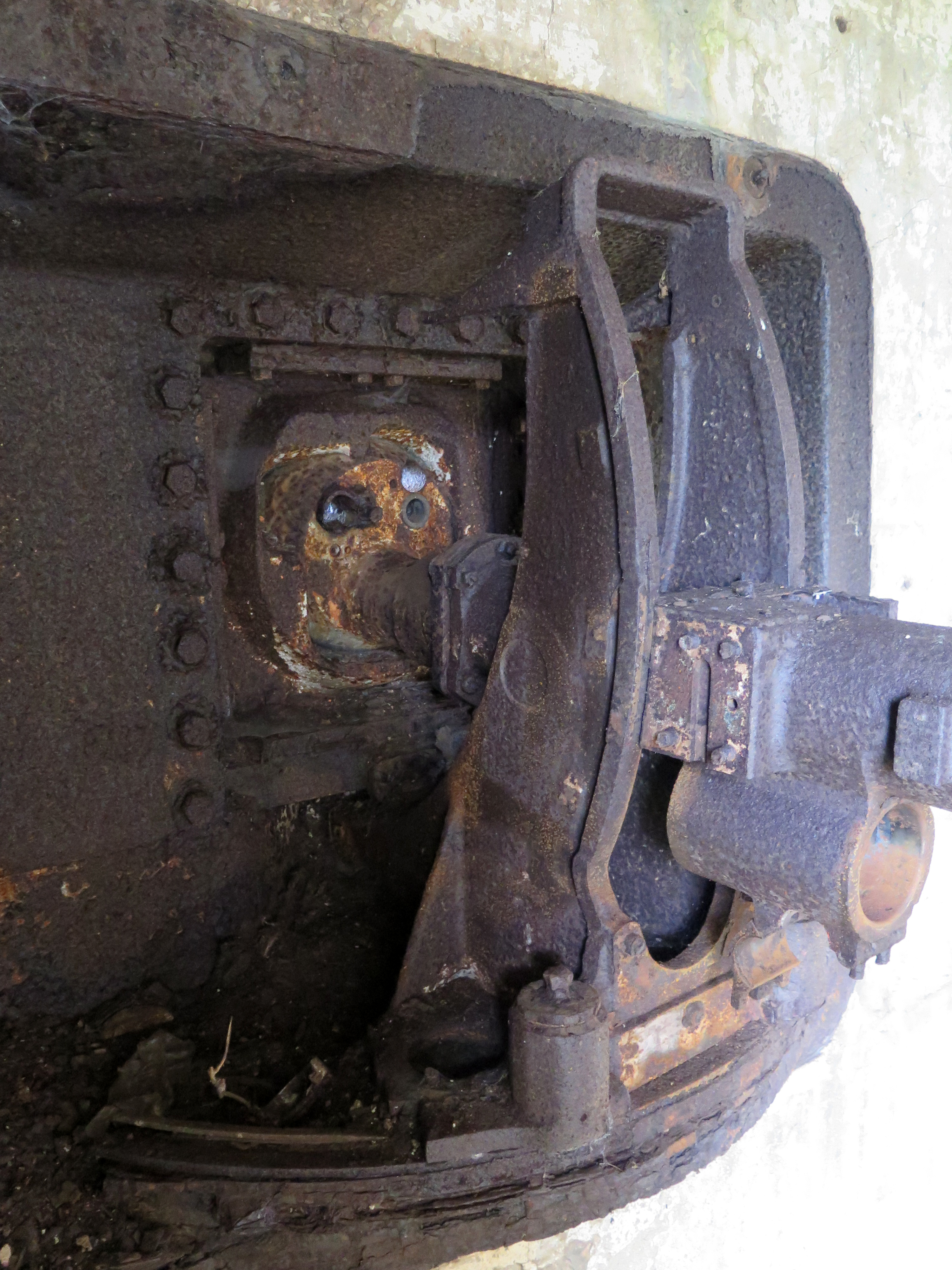 Landéda, fort Cézon : casemate pour arme mixte (canon antichars de 4,7 cm et mitrailleuse de calibre 7.92 mm), canon Skoda en place. Il a été saboté par pétardageImmatriculation