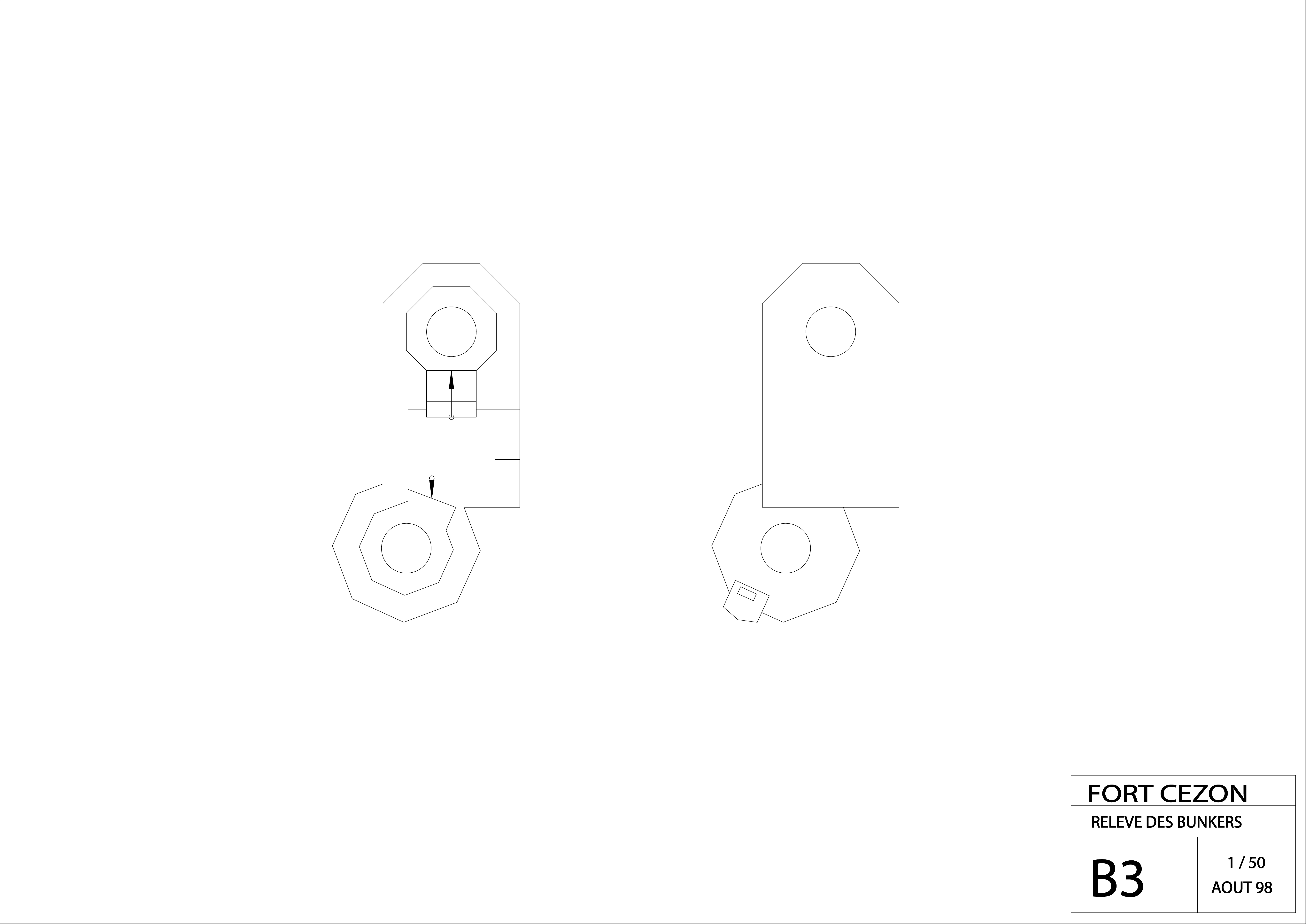 Landéda, île Cézon : plan du poste d'observation dit Tobrouk, modèle double pour mortier (relevé : Association Cézon, août 1998)Immatriculation
