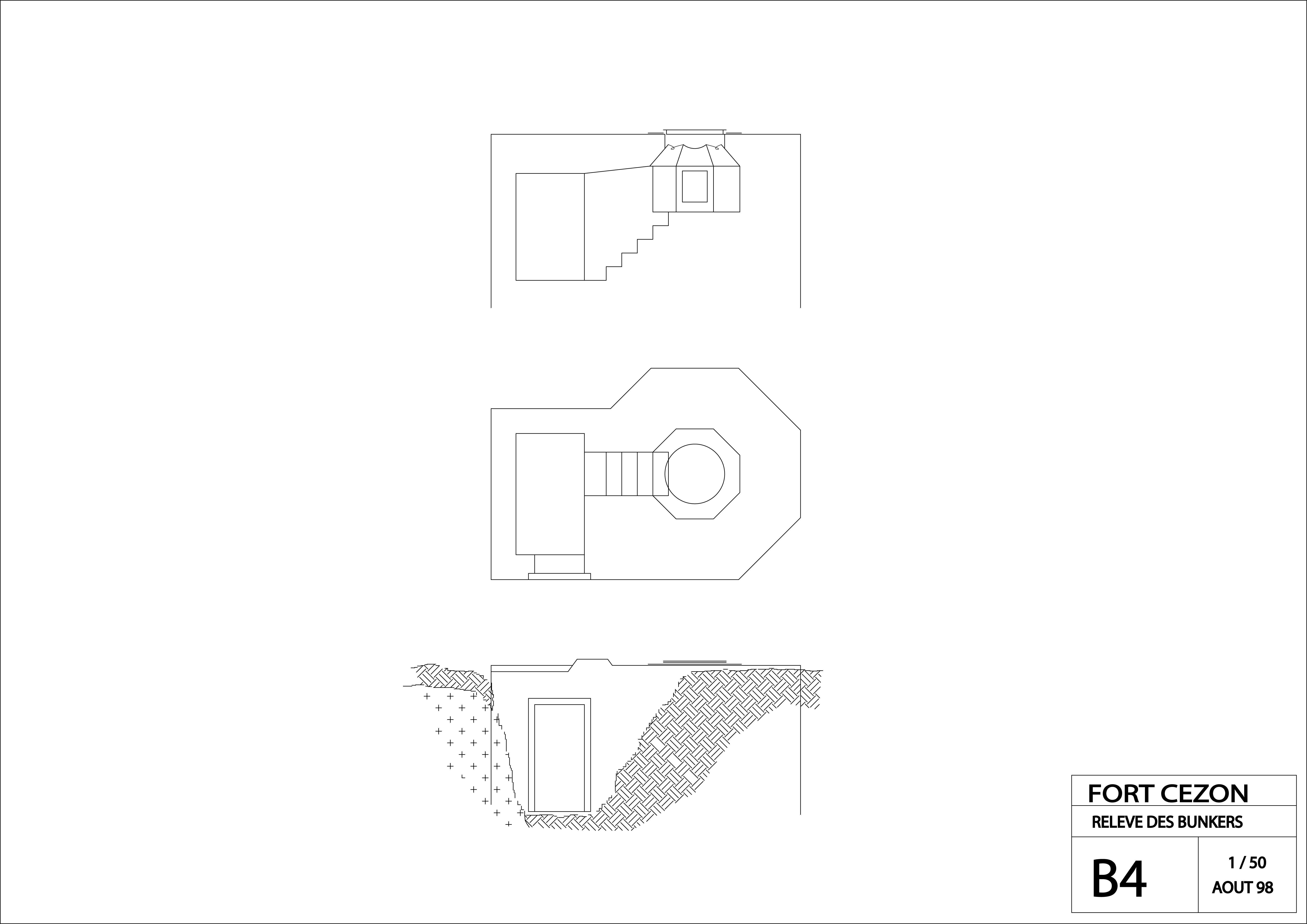 Landéda, île Cézon : plan, coupe et profil du Tobrouk pour tourelle de char (relevé : Association Cézon, août 1998)Immatriculation