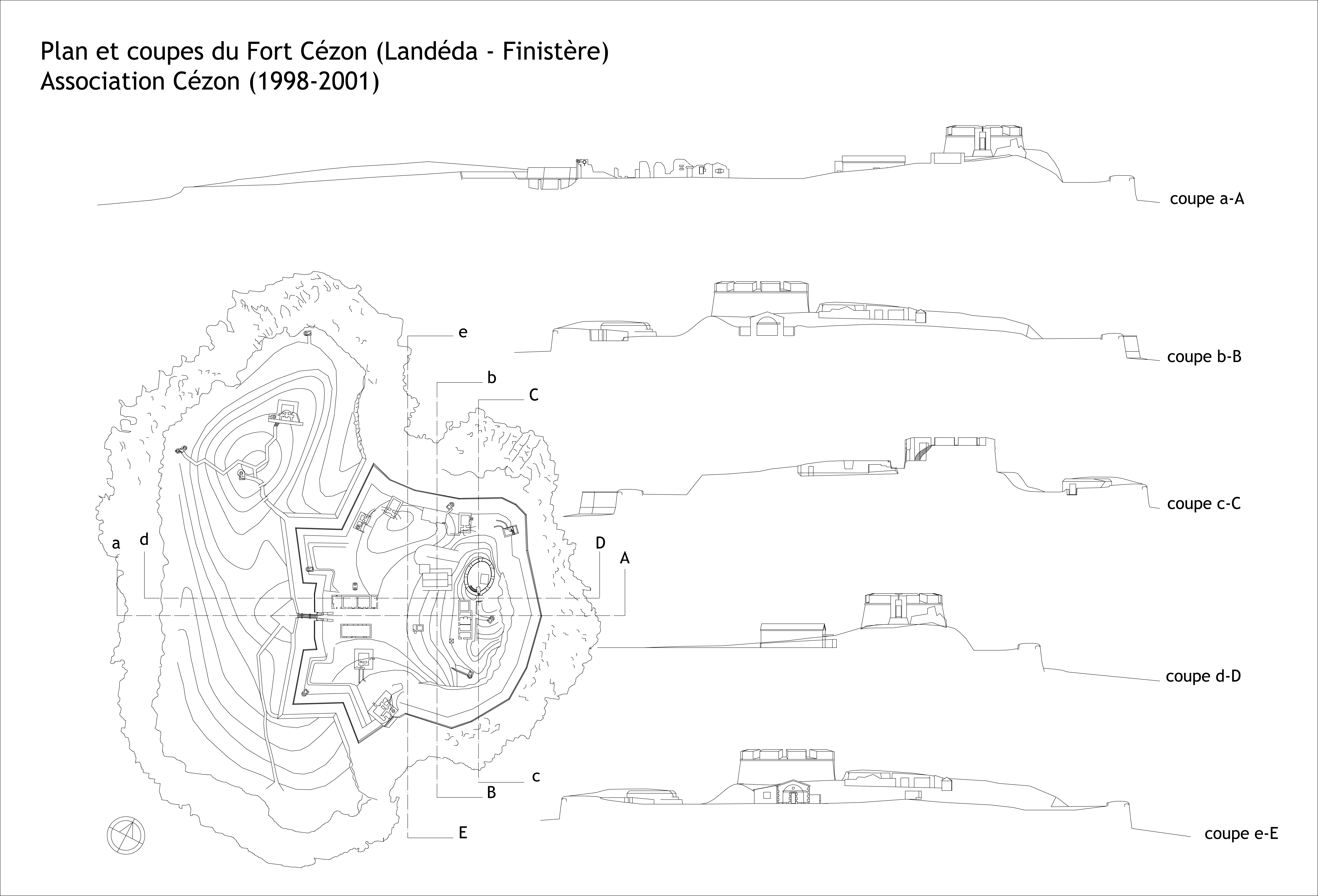 Landéda : plan et coupes de l'île et du fort Cézon (relevé : Association Cézon, 1998-2001)Immatriculation