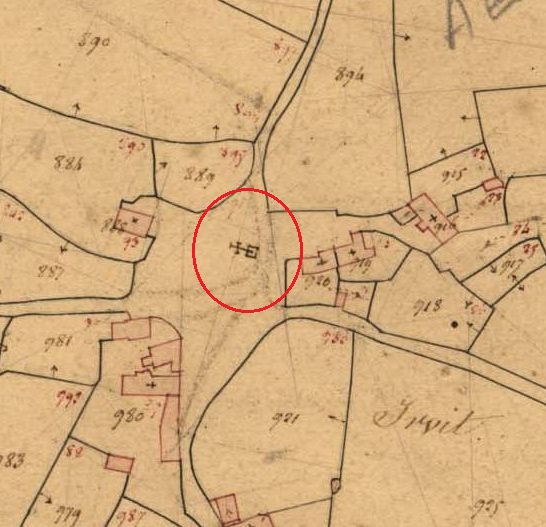 Le calvaire d'Irvit sur le cadastre de 1837 (A. D. du Finistère, 3 P 185/3)Immatriculation