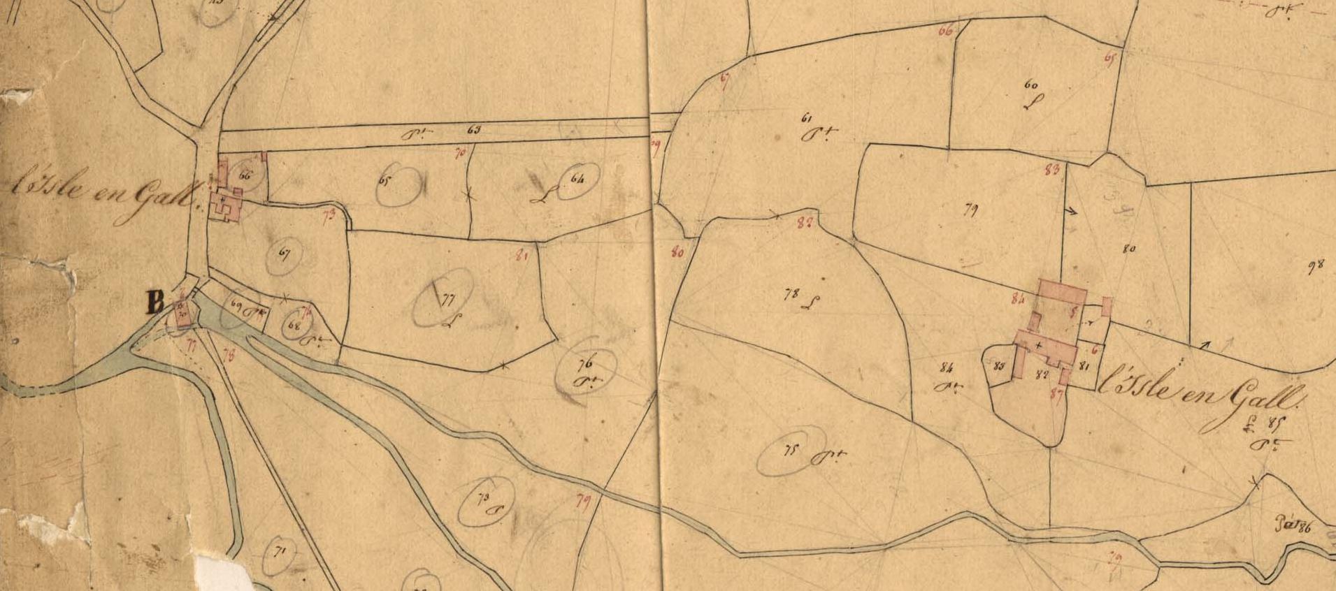 Le manoir de l'Île en Gall sur le cadastre de 1837 (A. D. du Finistère, 3 P 185/4)Immatriculation