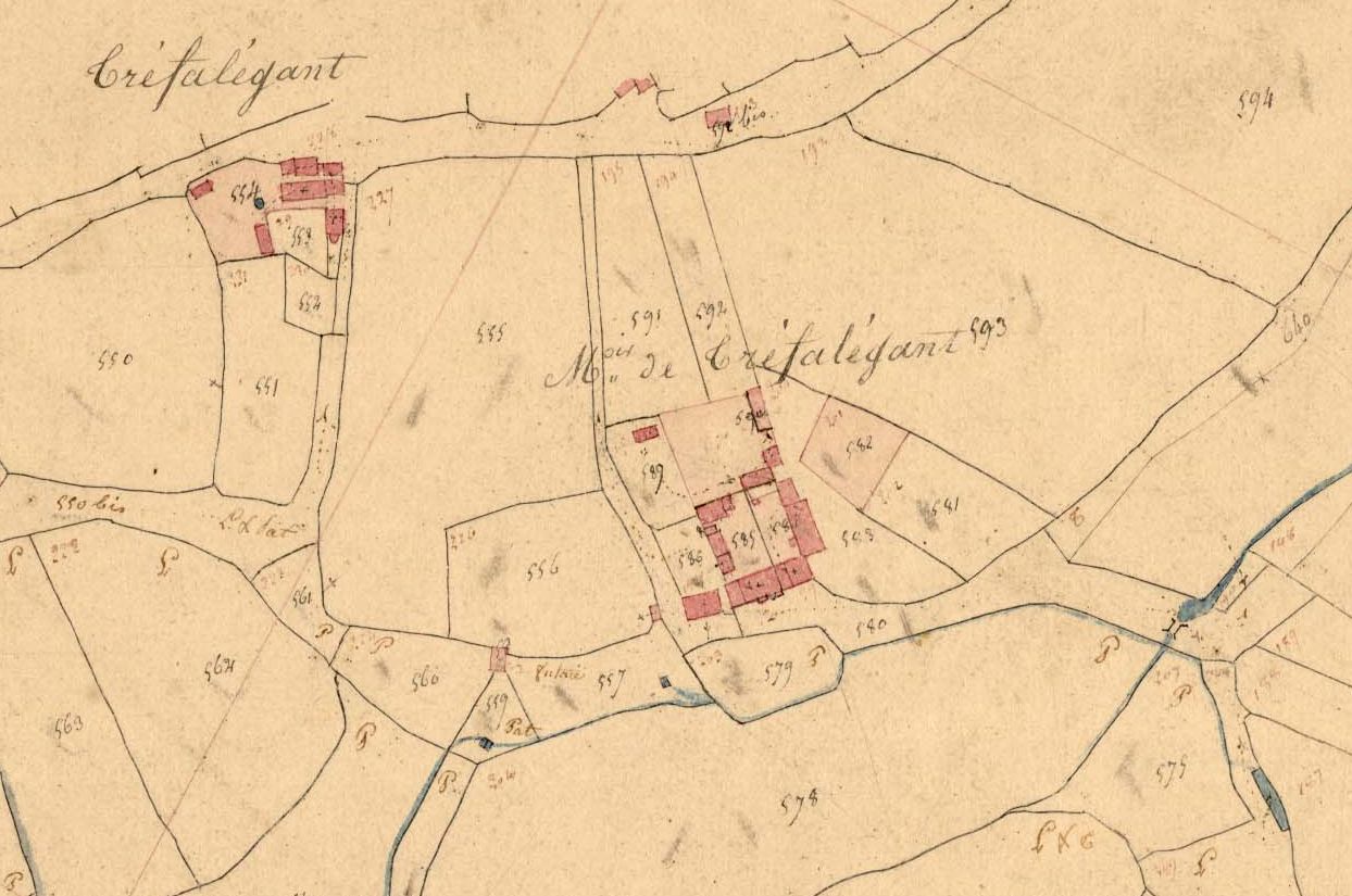 Le manoir et la ferme de Tréfalégan sur le cadastre de 1837 (A. D. du Finistère, 3 P 111/3)Immatriculation