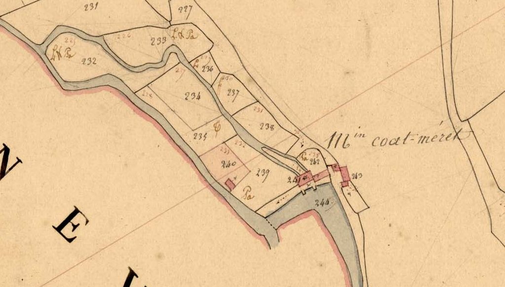 Le moulin de Coat-merret sur le cadastre de 1837 (A. D. du Finistère, 3 P 111/7)Immatriculation