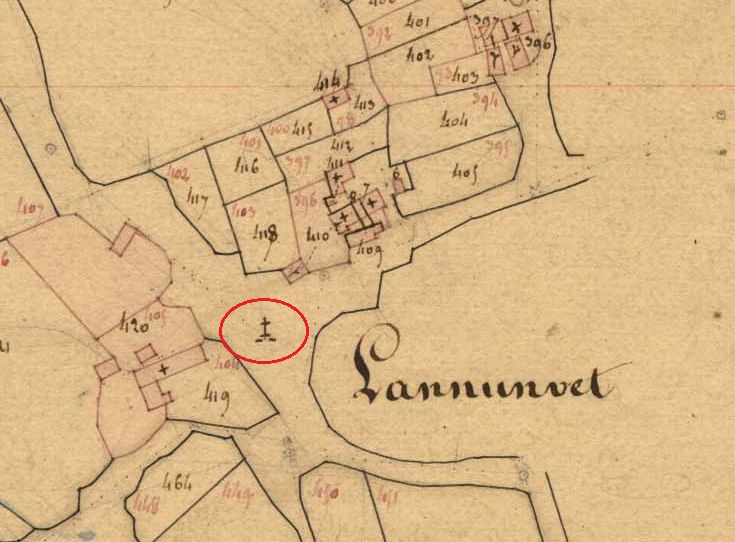 La croix de Lanneunvet sur le cadastre de 1837 (A. D. du Finistère, 3 P 187/8)Immatriculation