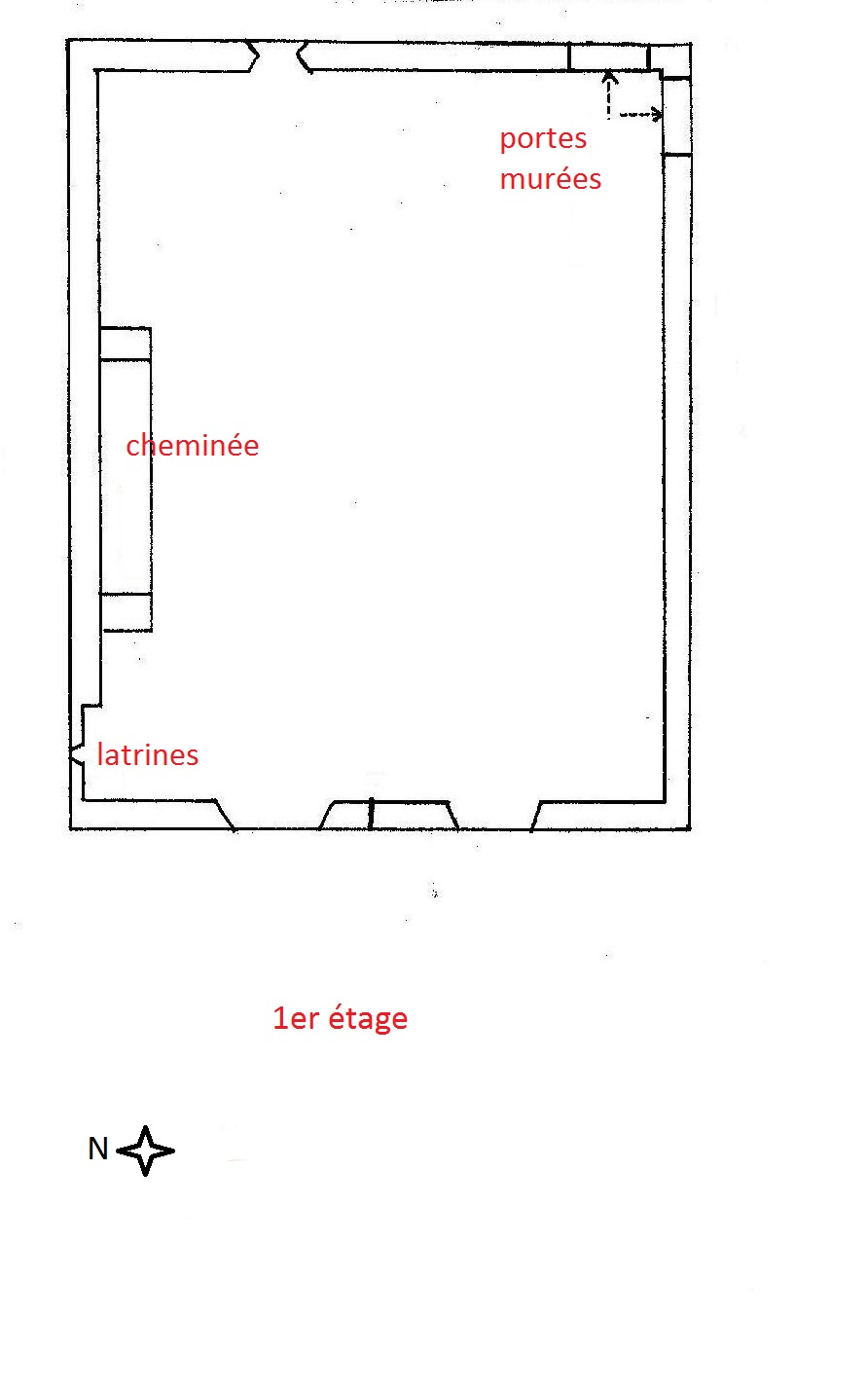 Manoir : plan schématique au sol du 1er étage (état en 1985)Immatriculation