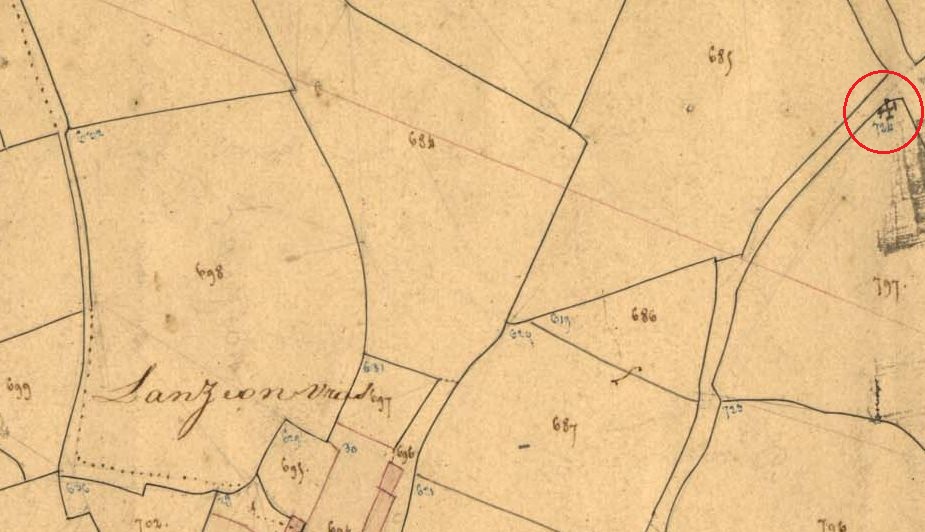 La croix de Prat ar Belec sur le cadastre de 1837 (A. D. du Finistère, 3 P 207/3)Immatriculation