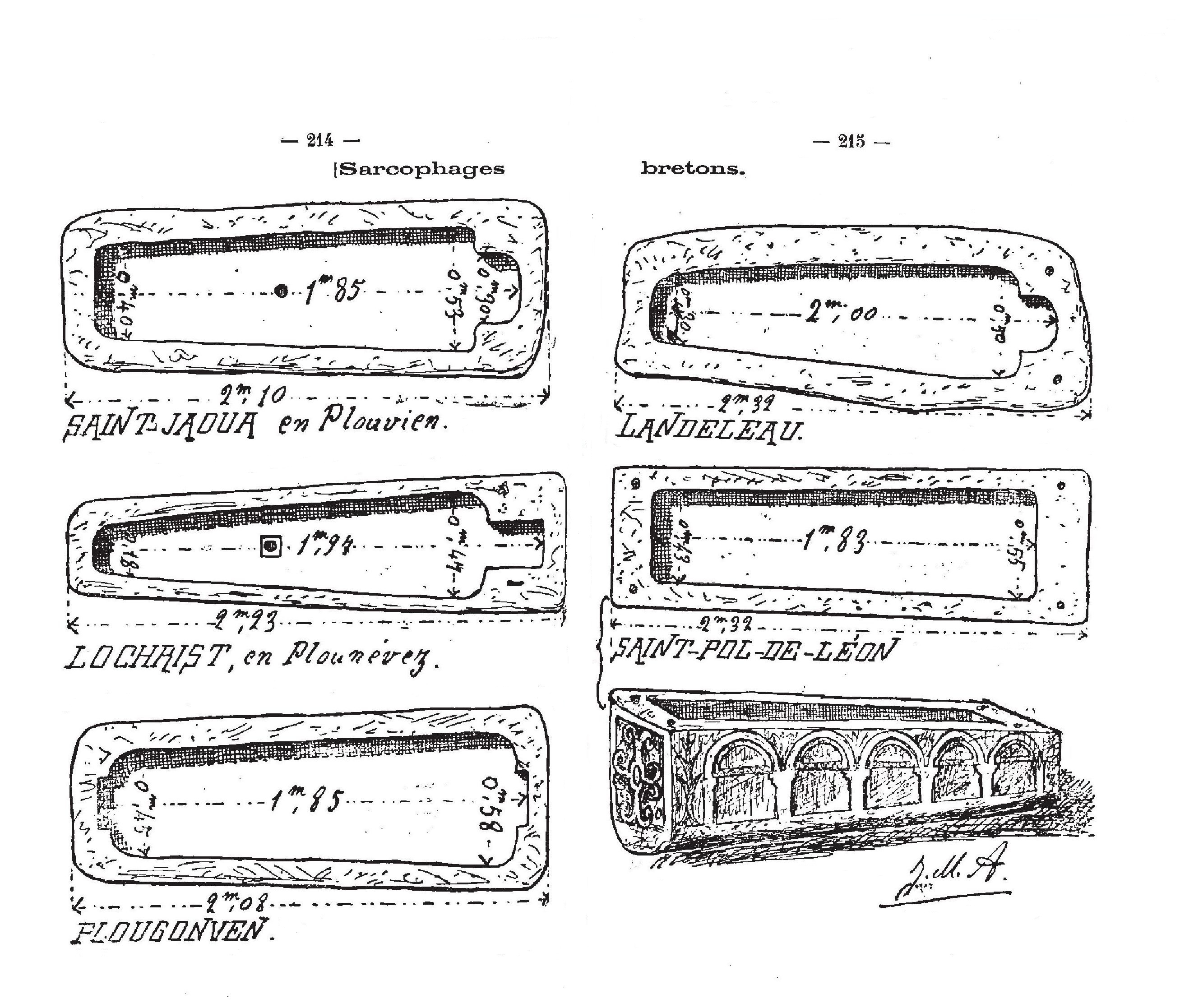 ABGRALL, Jean-Marie. Architecture bretonne. Étude des Monuments du diocèse de Quimper. Sarcophages anciens ou cercueils en pierre. Bulletin diocésain d’histoire et d’archéologie. 1903. (http://diocese-quimper.fr/bibliotheque/files/original)