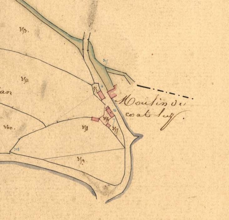 Le moulin de Coat Luz sur le cadastre de 1837 (A. D. du Finistère, 3 P 207/5)Immatriculation