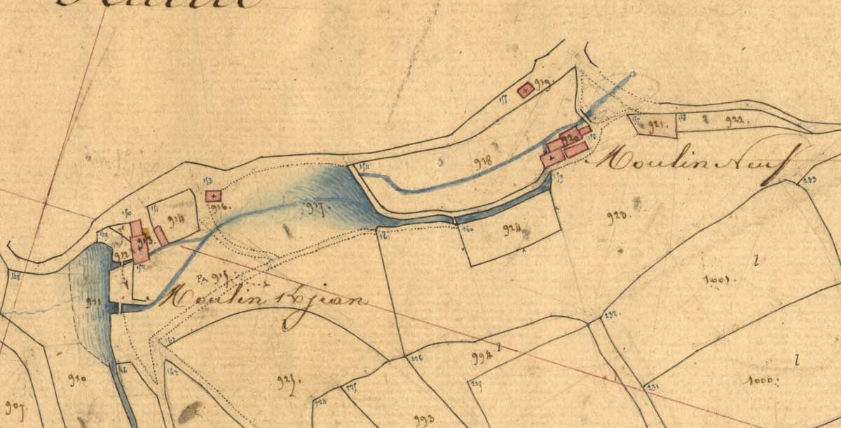 Le moulin de Kerjean et le Moulin neuf sur le cadastre de 1837 (A. D. du Finistère, 3 P 207/7)Immatriculation
