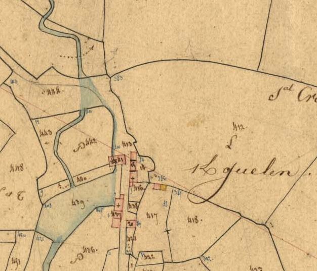 Le moulin de Kerguelen sur le cadastre de 1837 (A. D. du Finistère, 3 P 207/9)Immatriculation