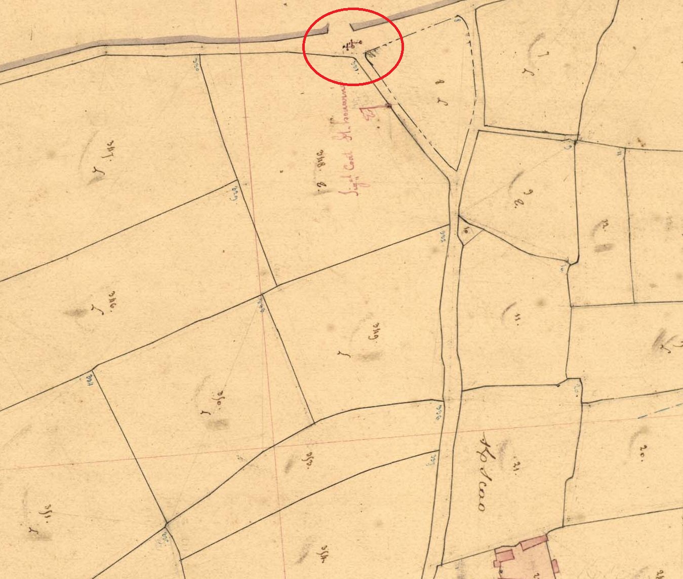 Sur le cadastre de 1837, deux croix sont dessinées à l'ouest de Kerjean, sur la route qui mène au moulin de Castel Fur (A. D. du Finistère, 3 P 207/13)Immatriculation