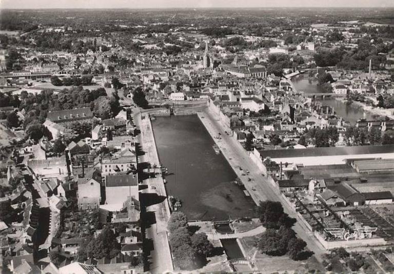 Vue aérienne oblique du bassin à flot de Redon, carte postale (v.1950)Immatriculation
