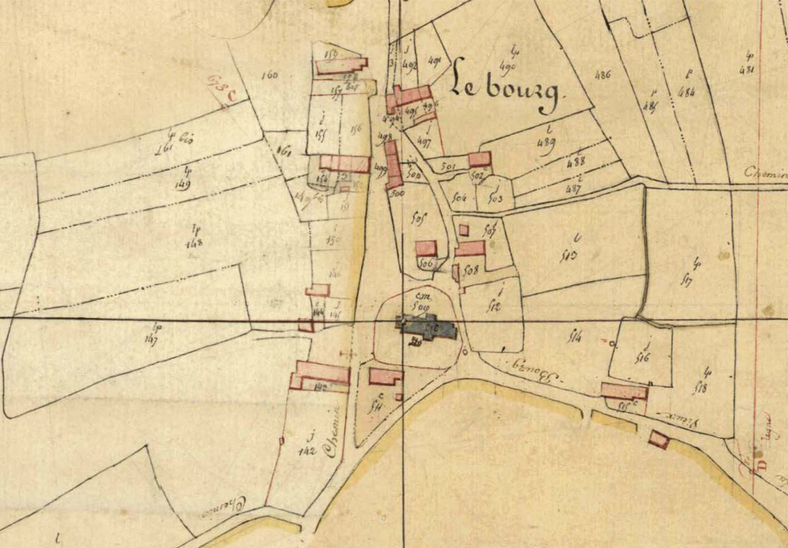 Extrait du cadastre. Section A1 et A2 de l’église, 1826 (A.D. Ille-et-Vilaine, 3 P 5376)Immatriculation