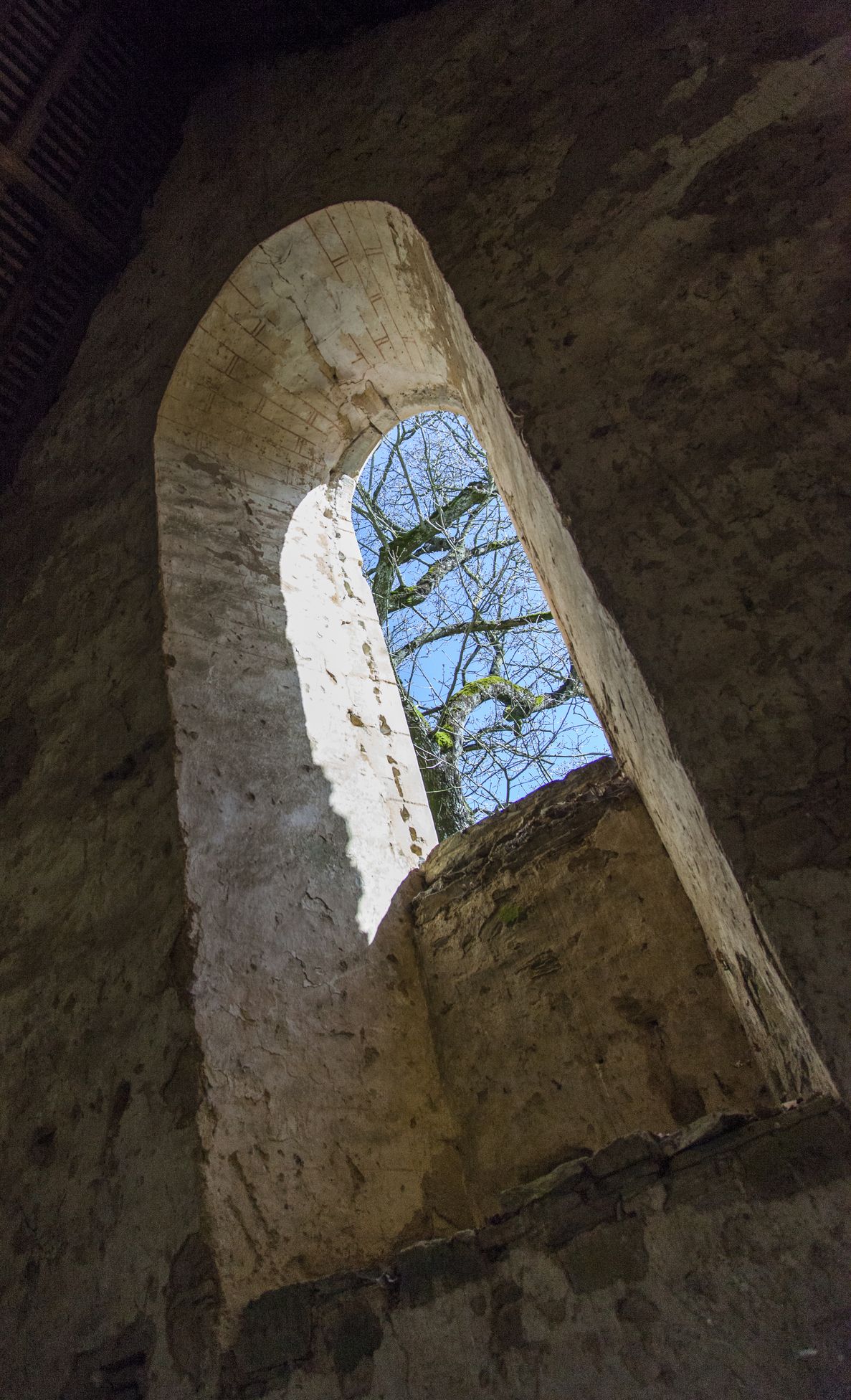 Détail de la maçonnerie en trompe-l'oeil de la fenêtre du choeur, chapelle de La CoëfferieImmatriculation