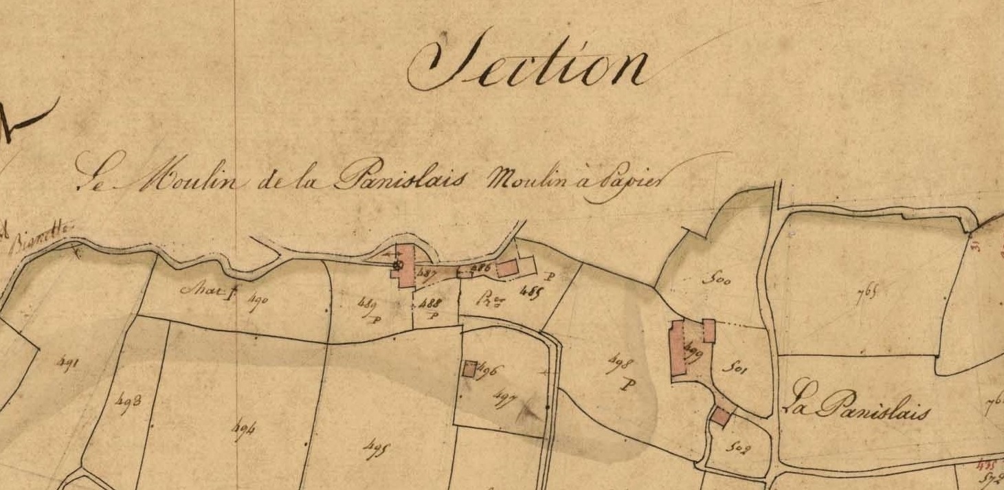 Moulin à papier de la Basse-Panisselais (cadastre 1834)Immatriculation