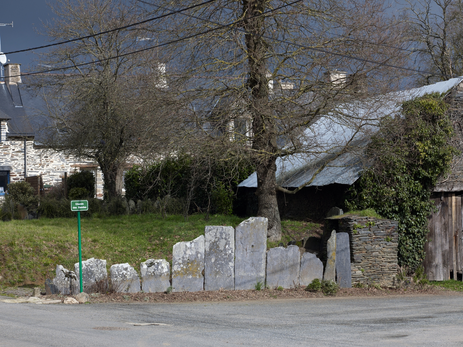 Au sud de l'écart, une rangée de palis a été dressée pour mener au puits ; à droite la grangeImmatriculation