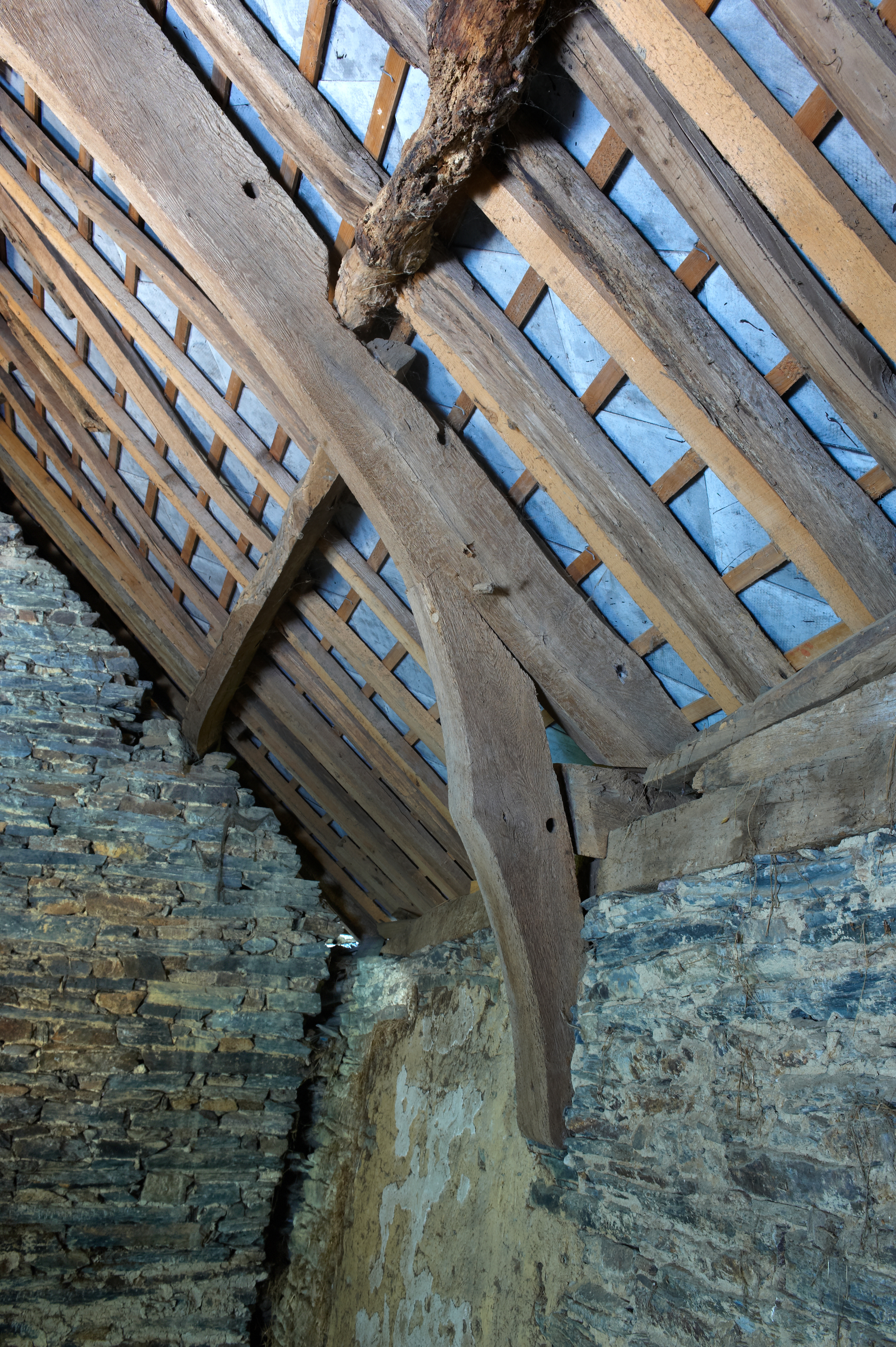Manoir, aile ouest, premier étage : départ de la ferme sur le mur sud (état en 2015)Immatriculation