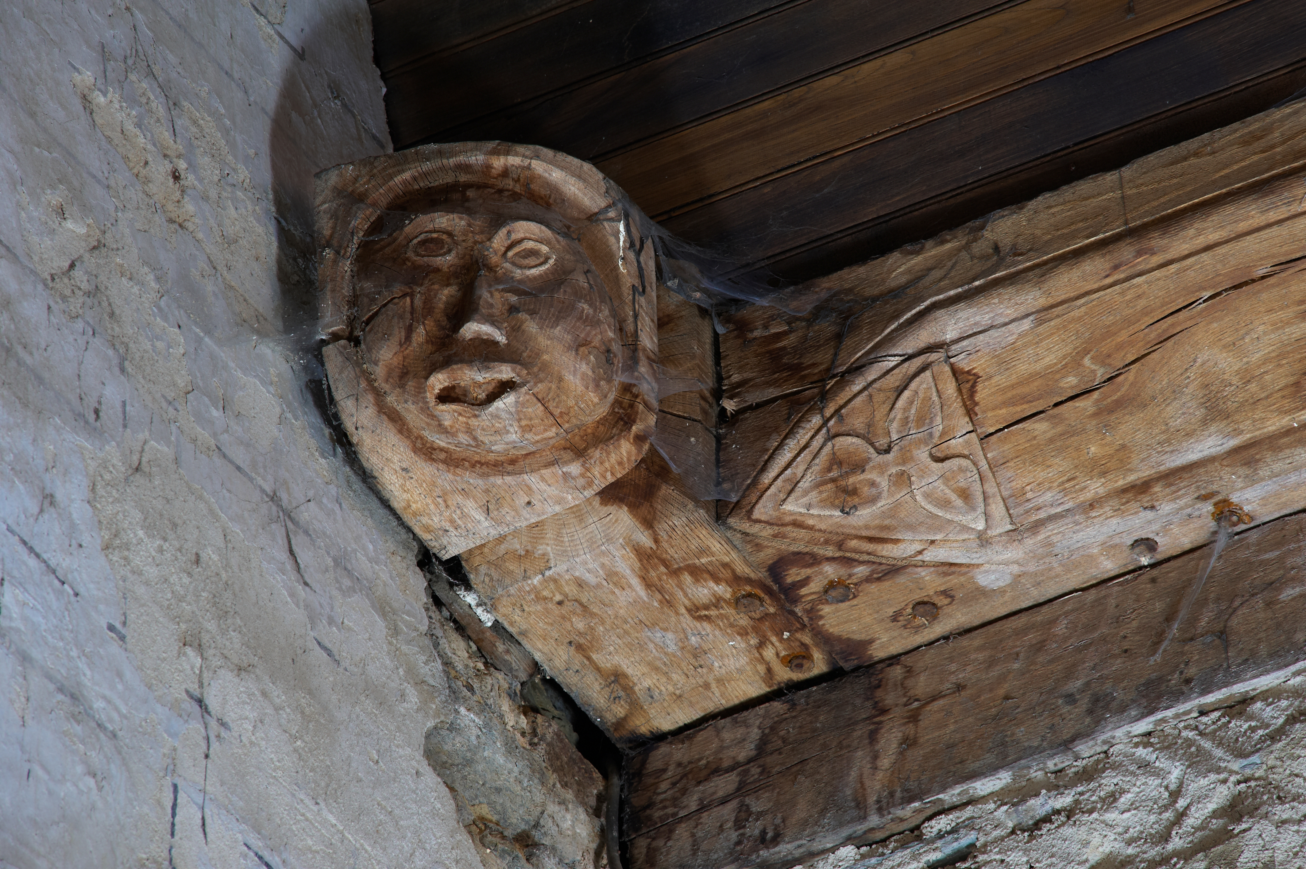 Transept, bras nord, mur est, angle nord : le blochet en forme de tête d'homme a été restauré (état en 2015)Immatriculation