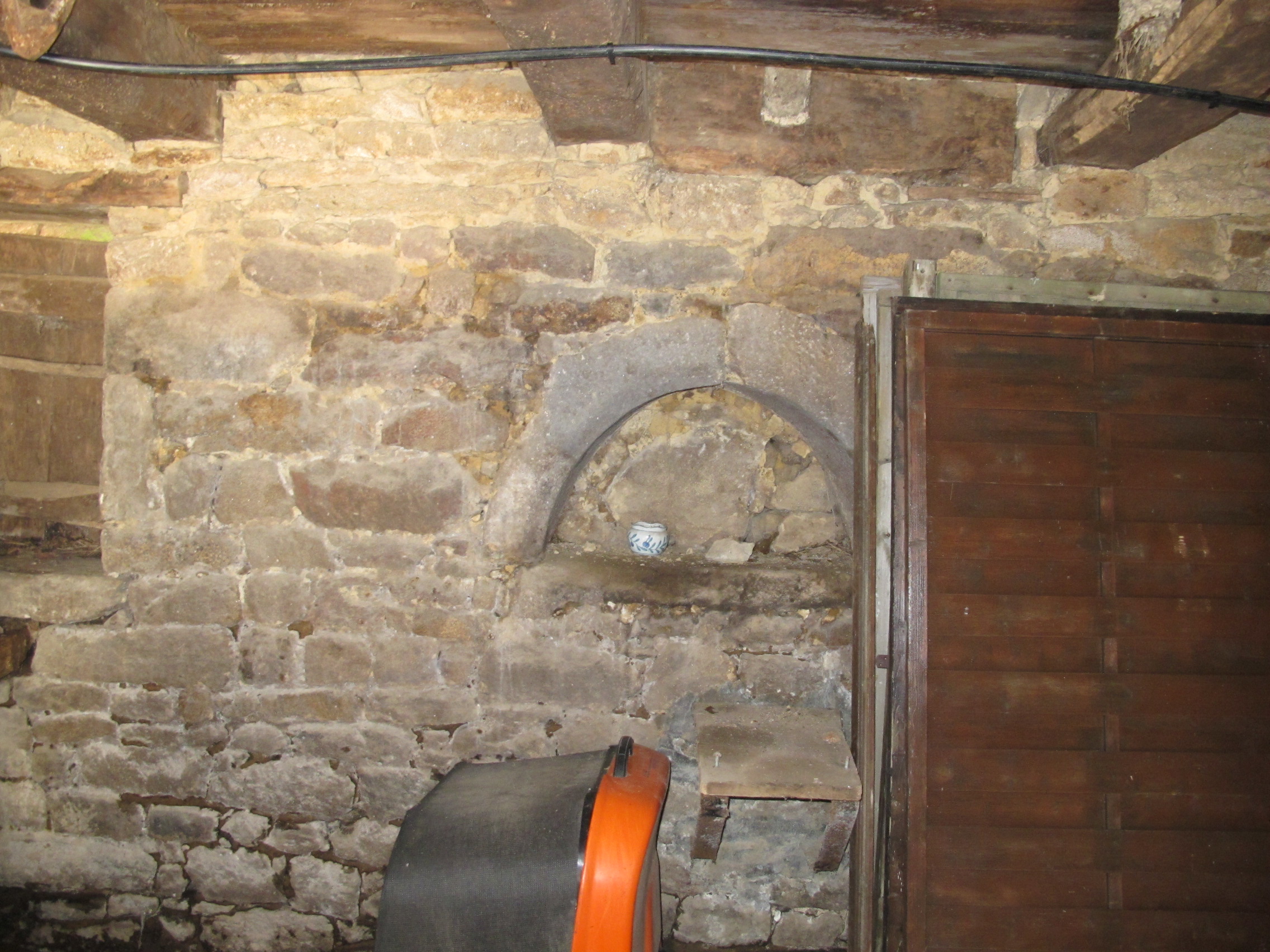 Remise-cellier à l'est, armoire murale encastrée dans le mur nordImmatriculation